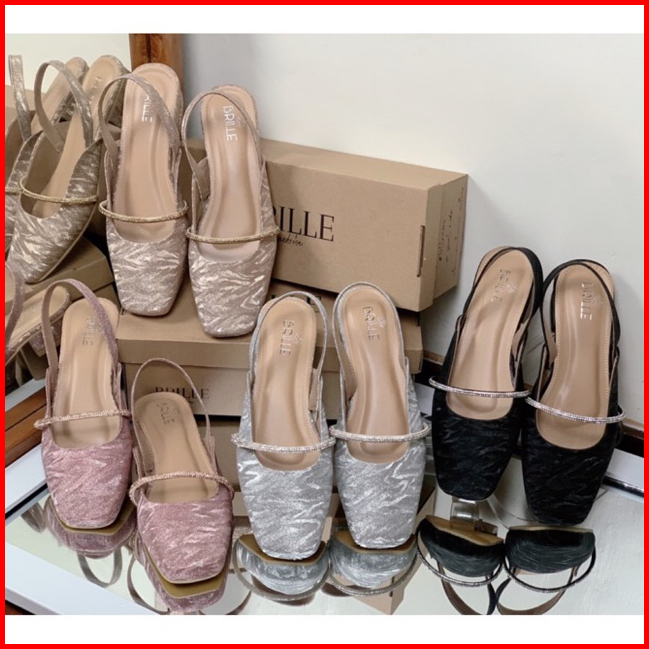 Hanna Square Mules Sandal Wanita Heels 3cm