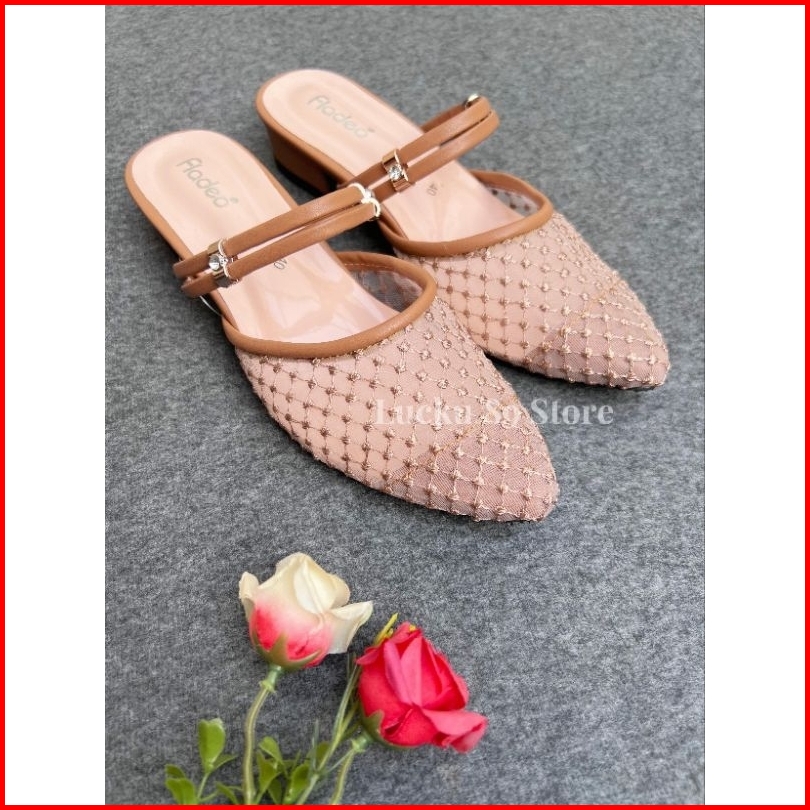Fladeo Sandal Wanita Brukat Heels 3cm Sendal Pesta Cantik