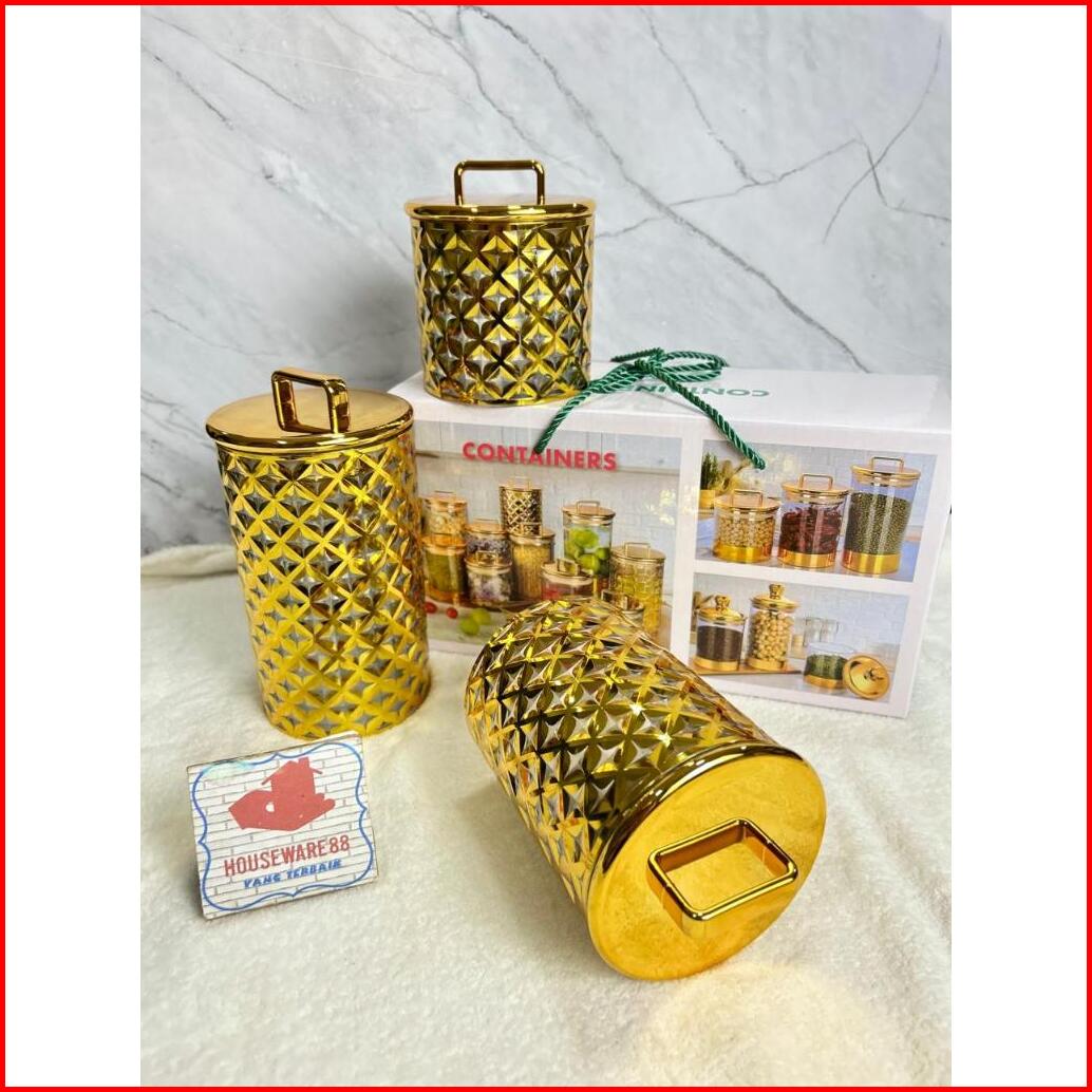 Toples Set 3pcs Bening Toples Aklirik Kedap Udara Toples Kue Lebaran Toples Makanan Toples Cemilan Toples Plastik Toples