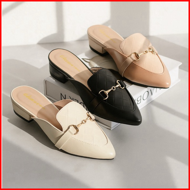 Sandal Mules Wanita Terbaru 2025 Hak 3cm Sepatu Mewah Murah Elegan