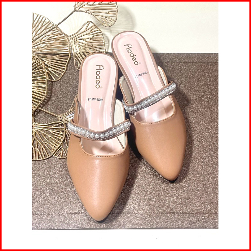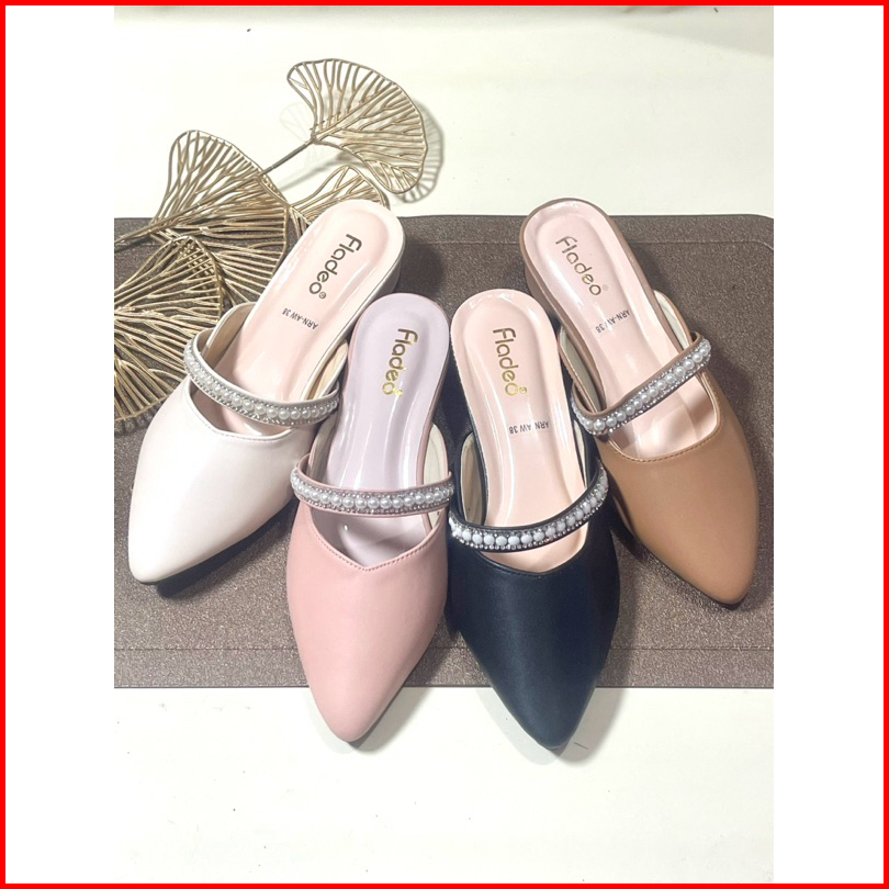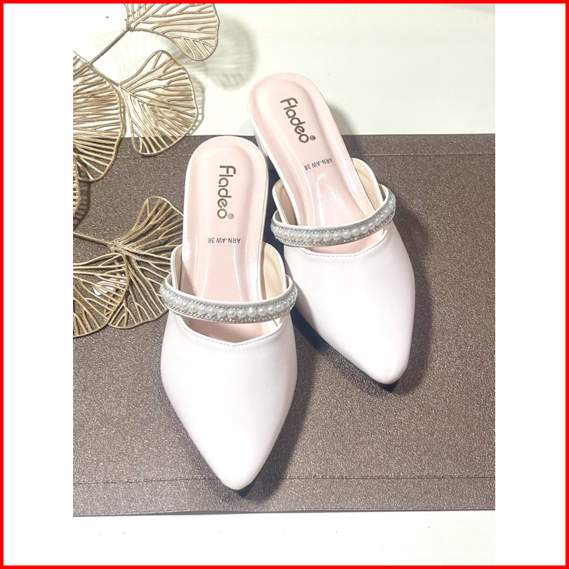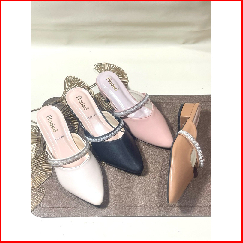 Sepatu Sandal Wanita Terbaru Mules Heels Fyo Wanita Slop Mutiara 3cm