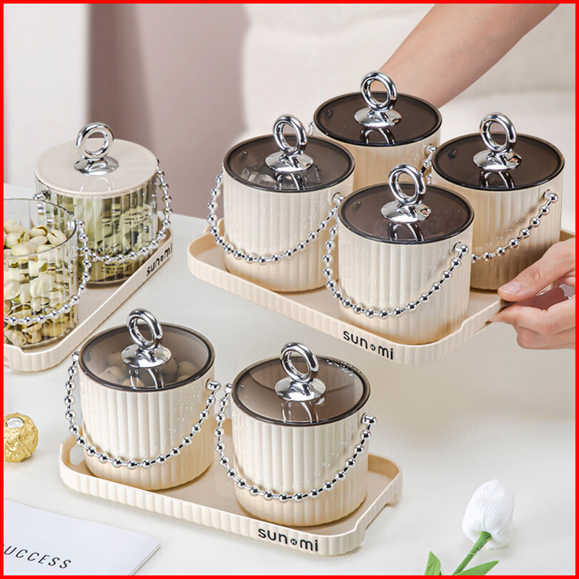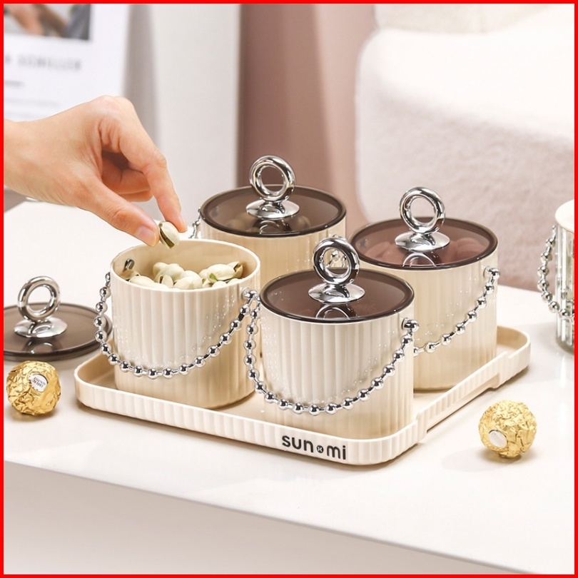 1set Pengatur Kacang Toples Kue Kacang Permen Toples Set Nampan Toples Imlek Lebaran Nut Storage Jar