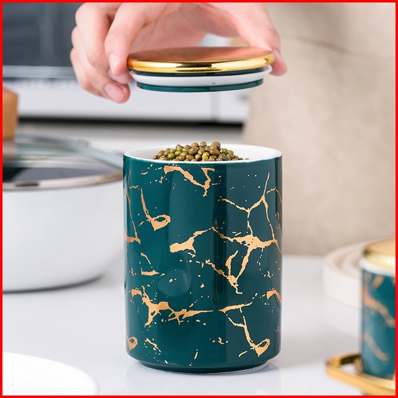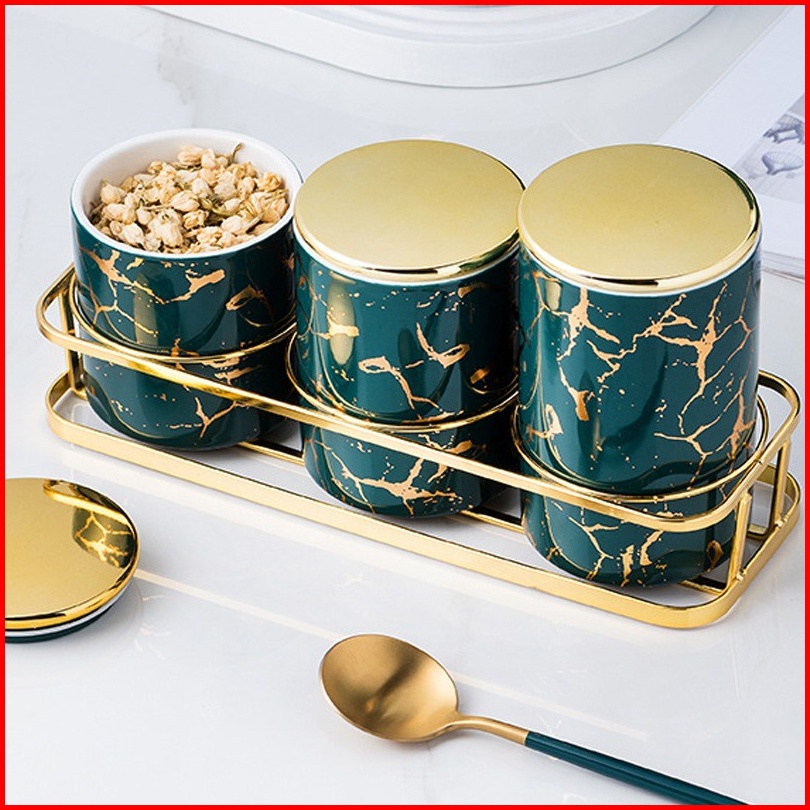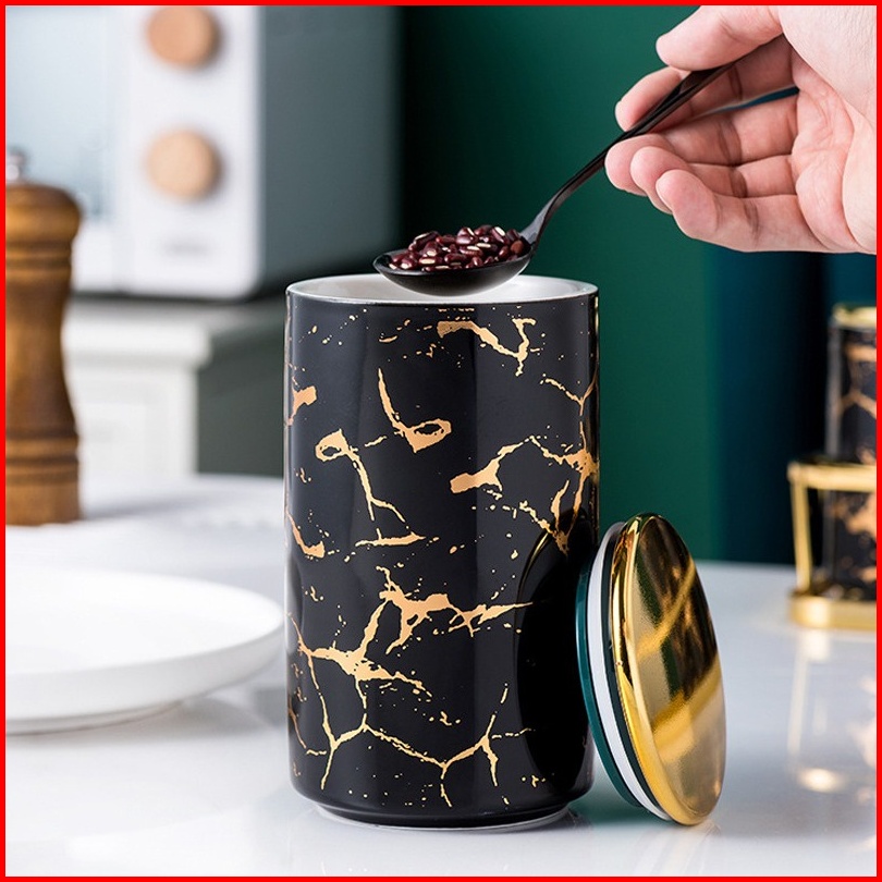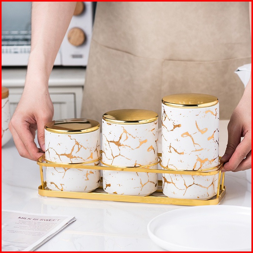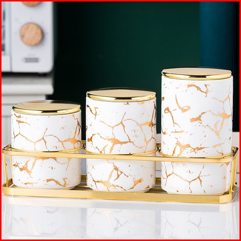 Toples Makanan Cemilan Mewah Motif Marble Marbel Snack Jar Set Dengan Panjang Trapesium Rak Puith