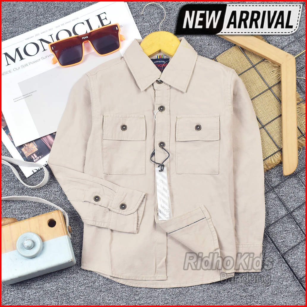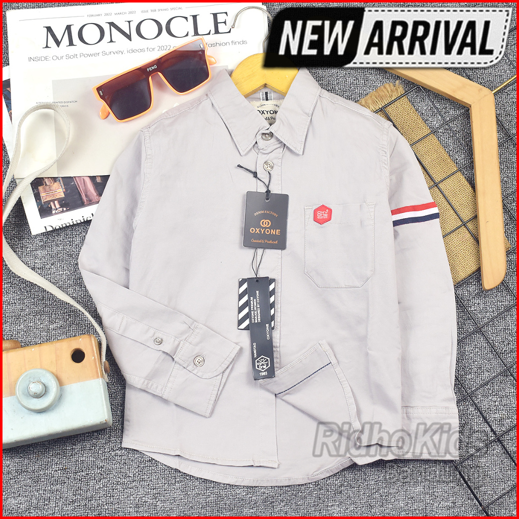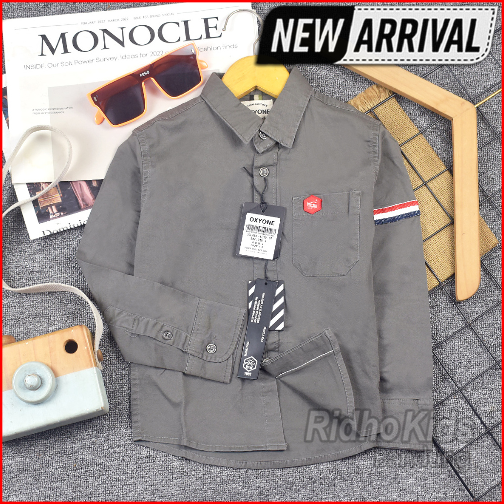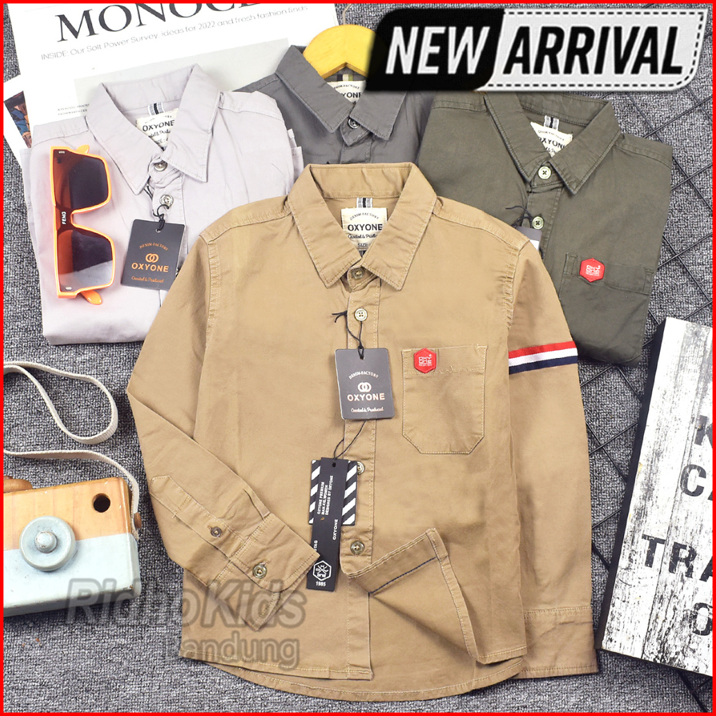 Kemeja Lengan Panjang Anak Laki Laki 3 - 14 Tahun Motif Polos Oxyone Premium