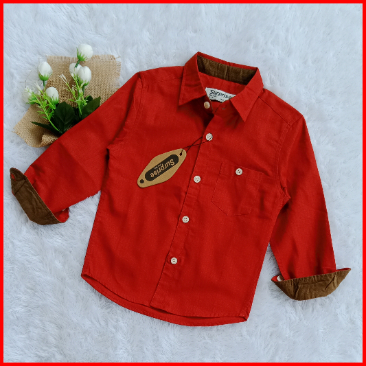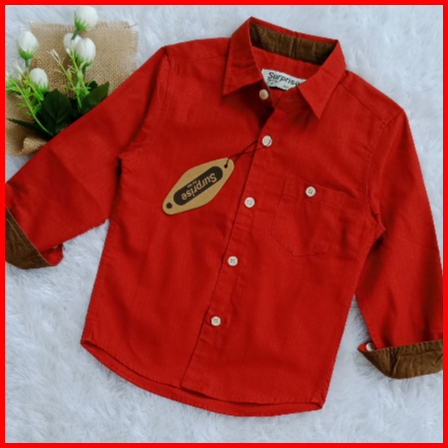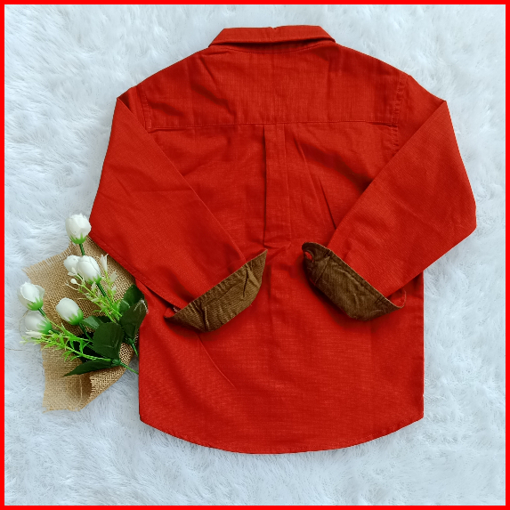 Kemeja Hem Anak 1-12 Tahun Lengan Panjang Polos Warna Merah Bata Terang Terakota Bahan Katun Sigaret Premium By Superwhi