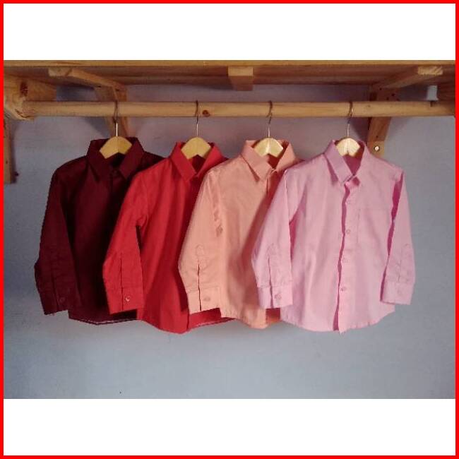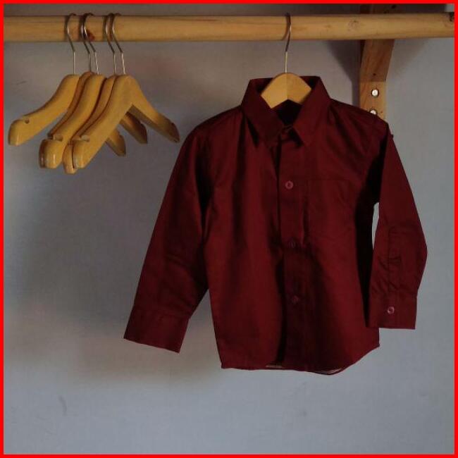 Gratis Dasi Kemeja Anak Cowok Laki-laki Lengan Panjang Maroon Sampai Umur 8 Tahun
