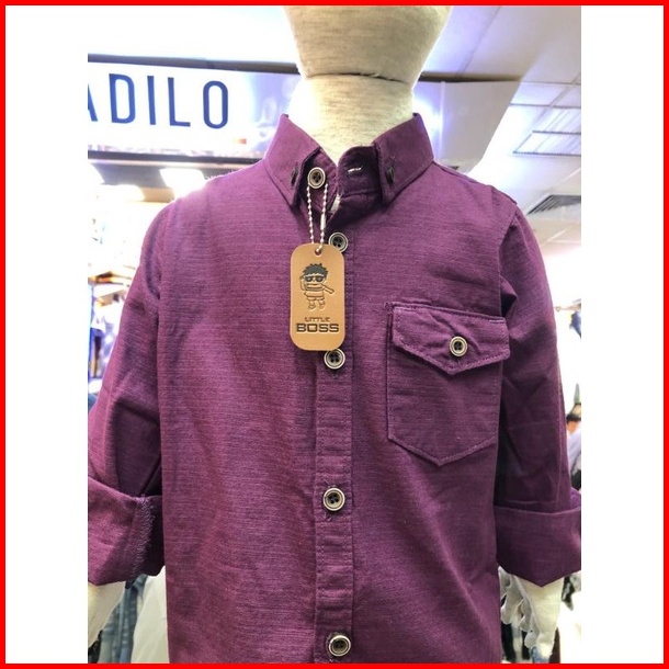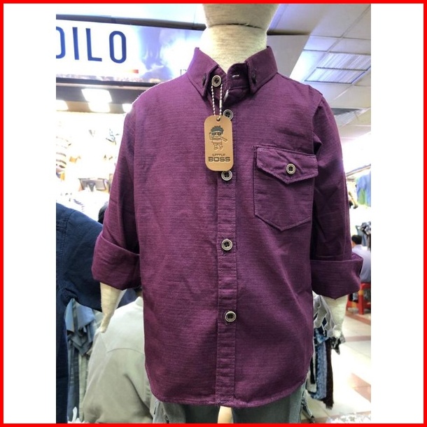 Kemeja Lengan Panjang Anak Laki-laki Warna Ungu Burgundy Bahan Katun Cigarett Premium Usia 2-17 Tahun