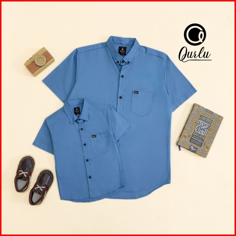 Qurlu - Kemeja Kerah Formal Dewasa Anak Warna Blue Steel Bisa Couple Ayah Dan Anak
