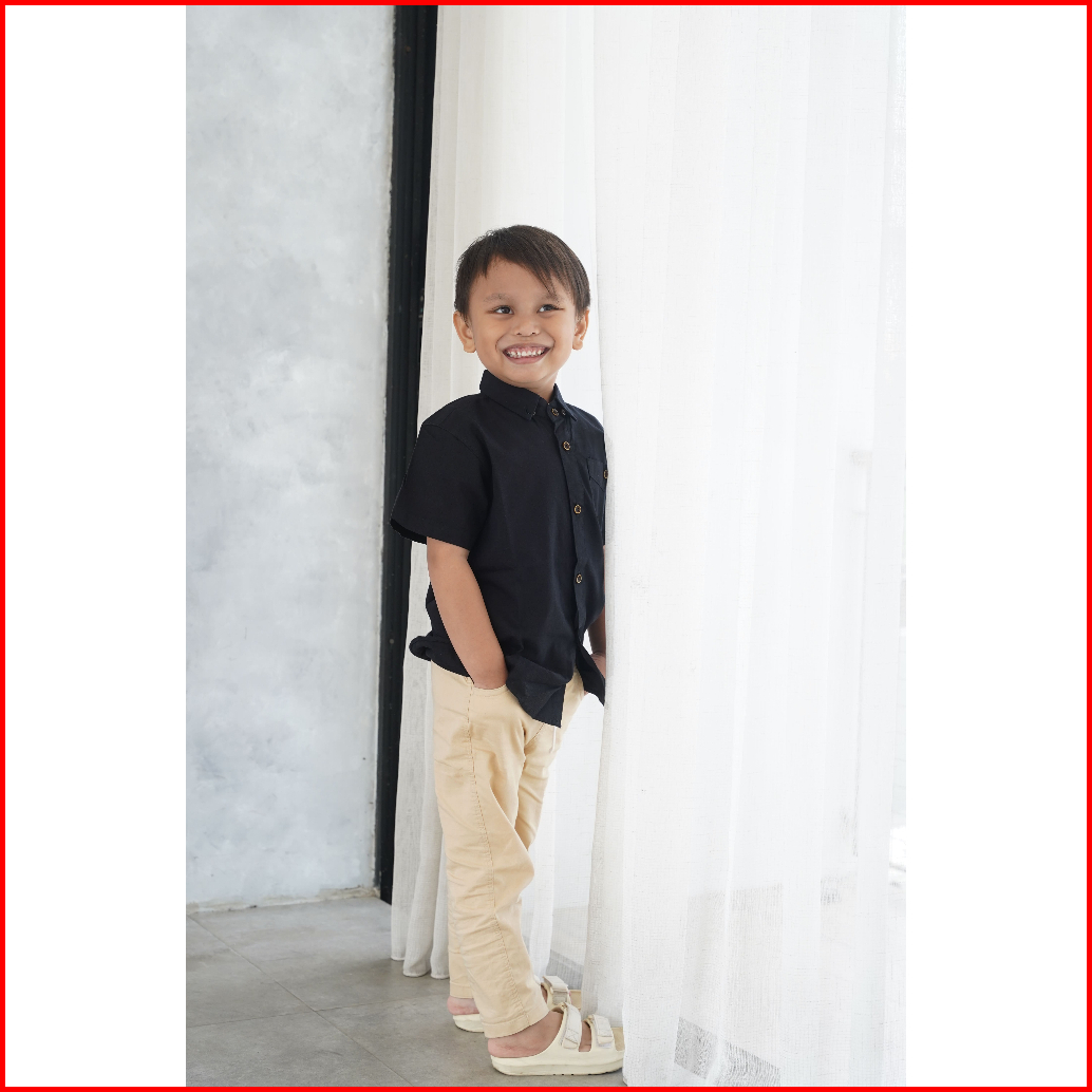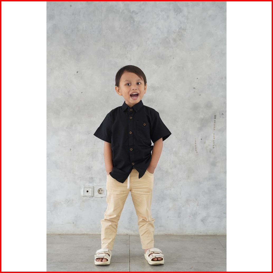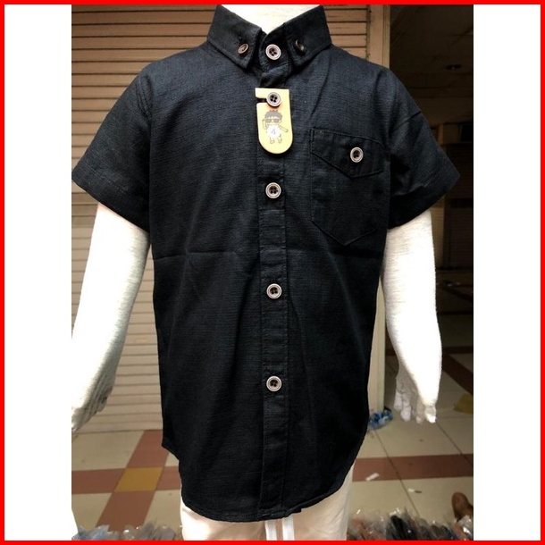 Kemeja Lengan Pendek Warna Hitam Anak Laki-laki Bahan Katun Uniqlo Premium Usia 1-16 Tahun