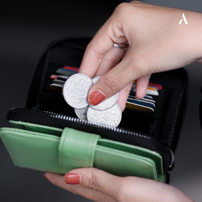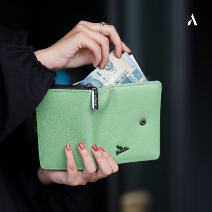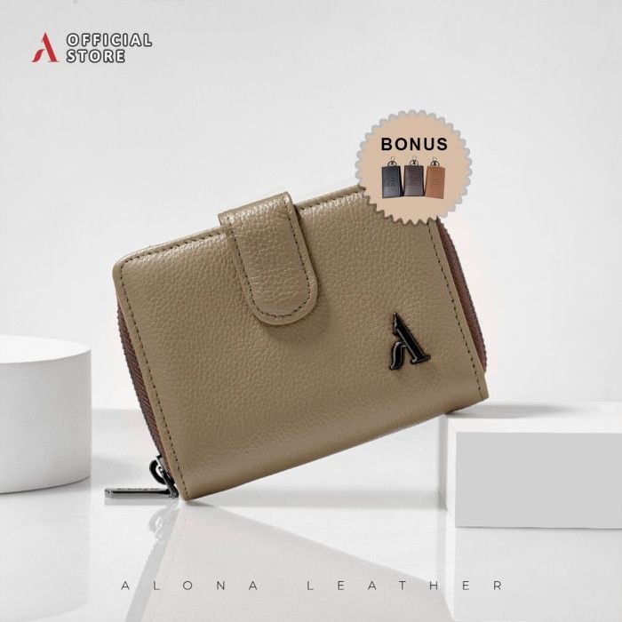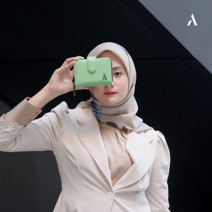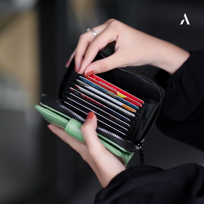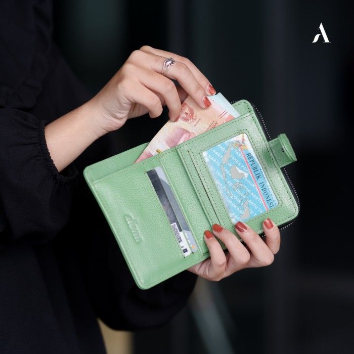 Dompet Wanita Mini Card Holder 2 in 1 Alona Hilorry Wallet Kulit Sapi - Sage