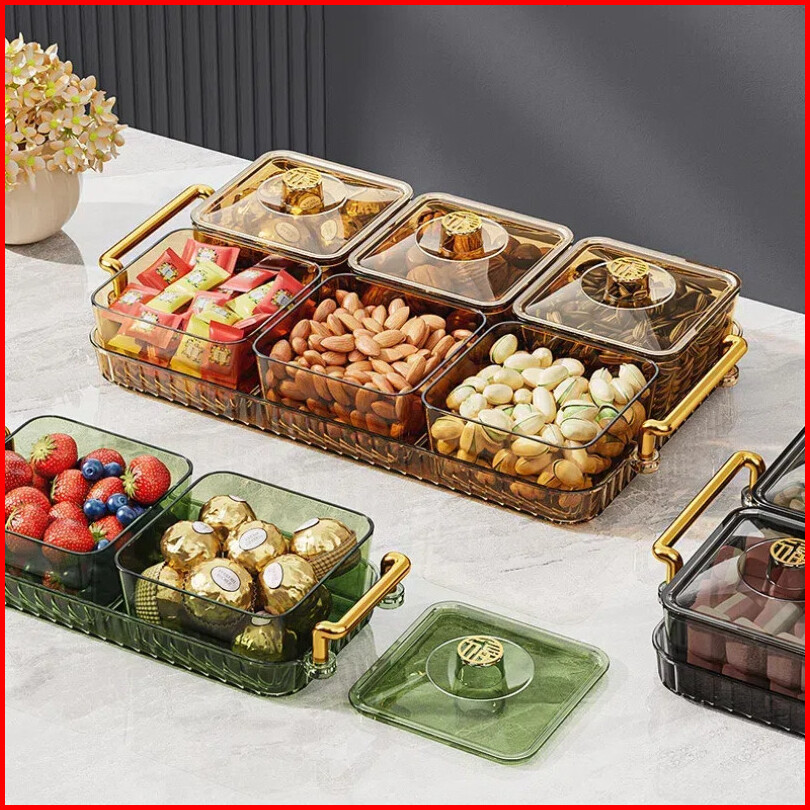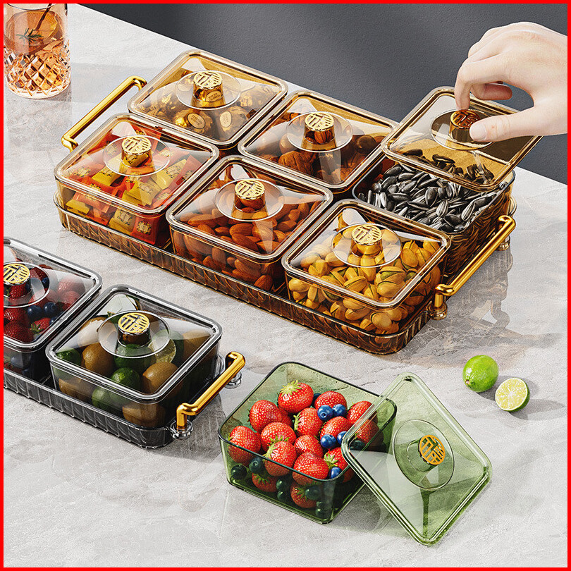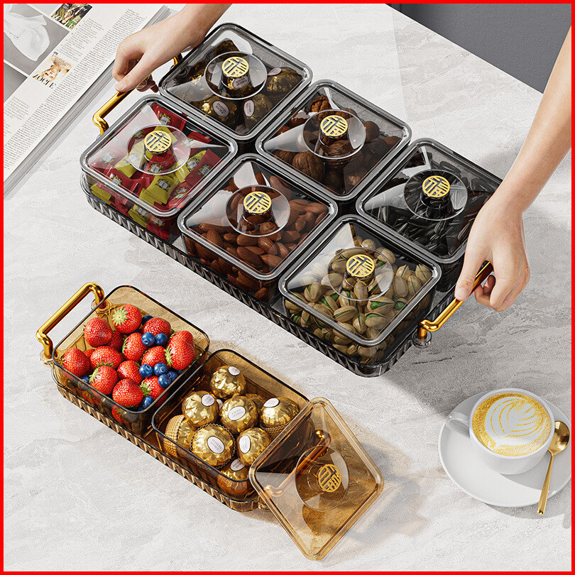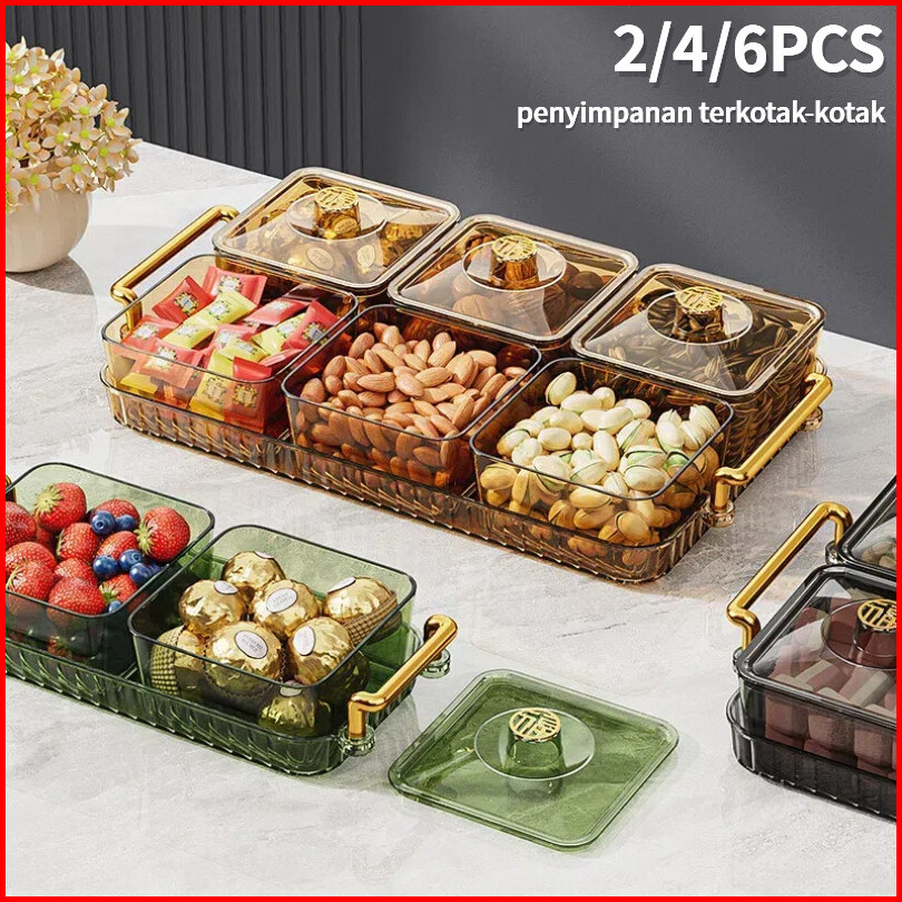 Toples Nampan Snack Acrylic Kotak Buah Kering Toples Makanan Ringan Toples Kue Lebaran 2 4 6 Sets