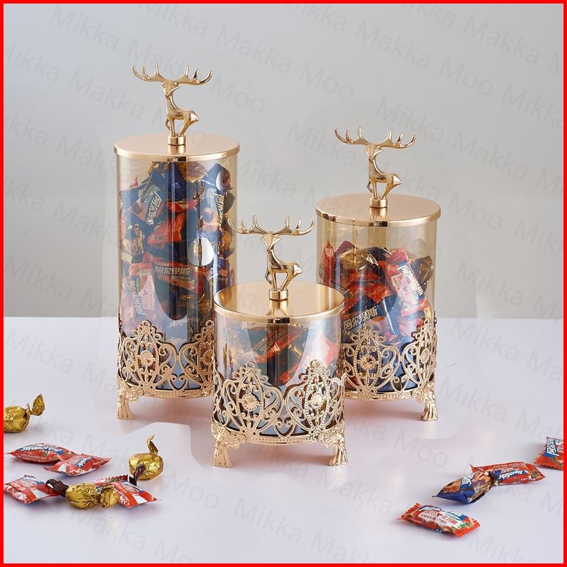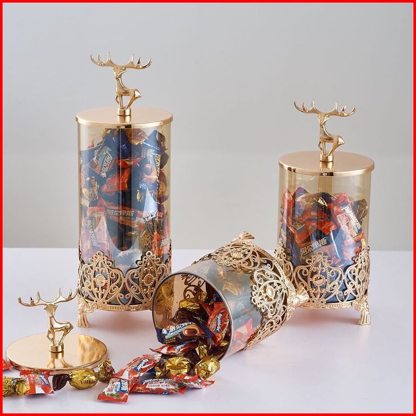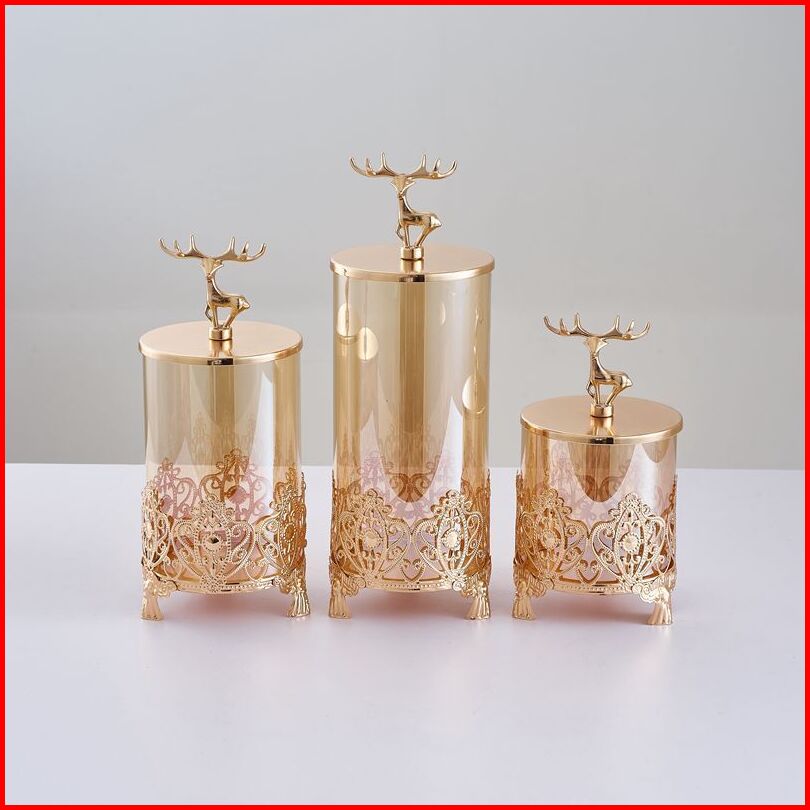 Toples Penyimpanan Rusa Toples Toples Kaca Guci Penyimpanan Kaca Glass Storage Jars Home Coffee Table Candy Desktop Luxu