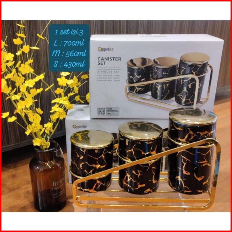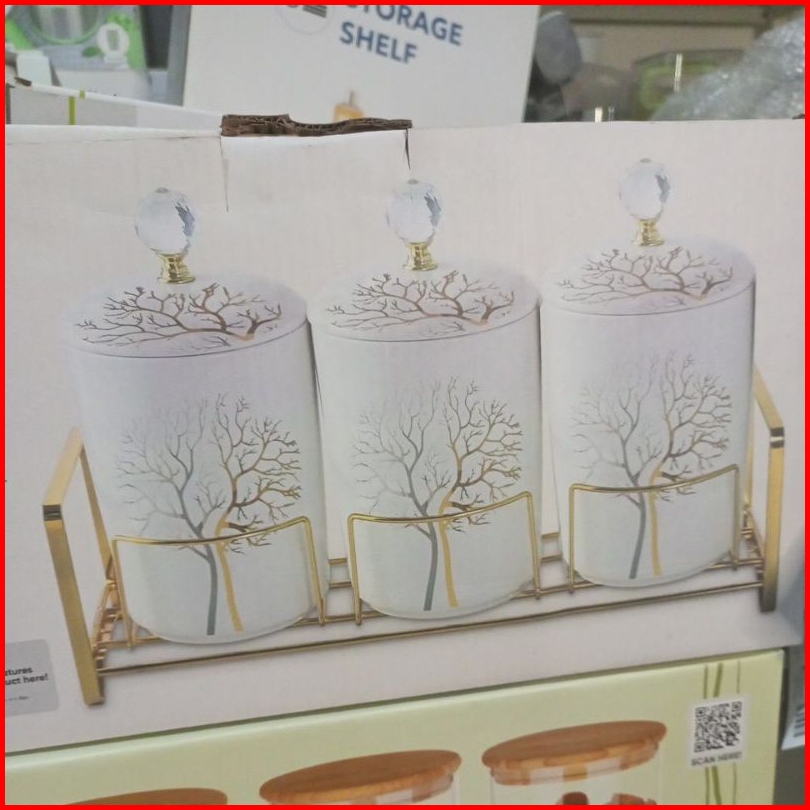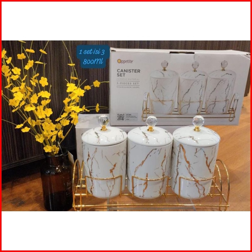 Informa Toples Marble Dengan Rak Canister Mewah Set Of 3pcs