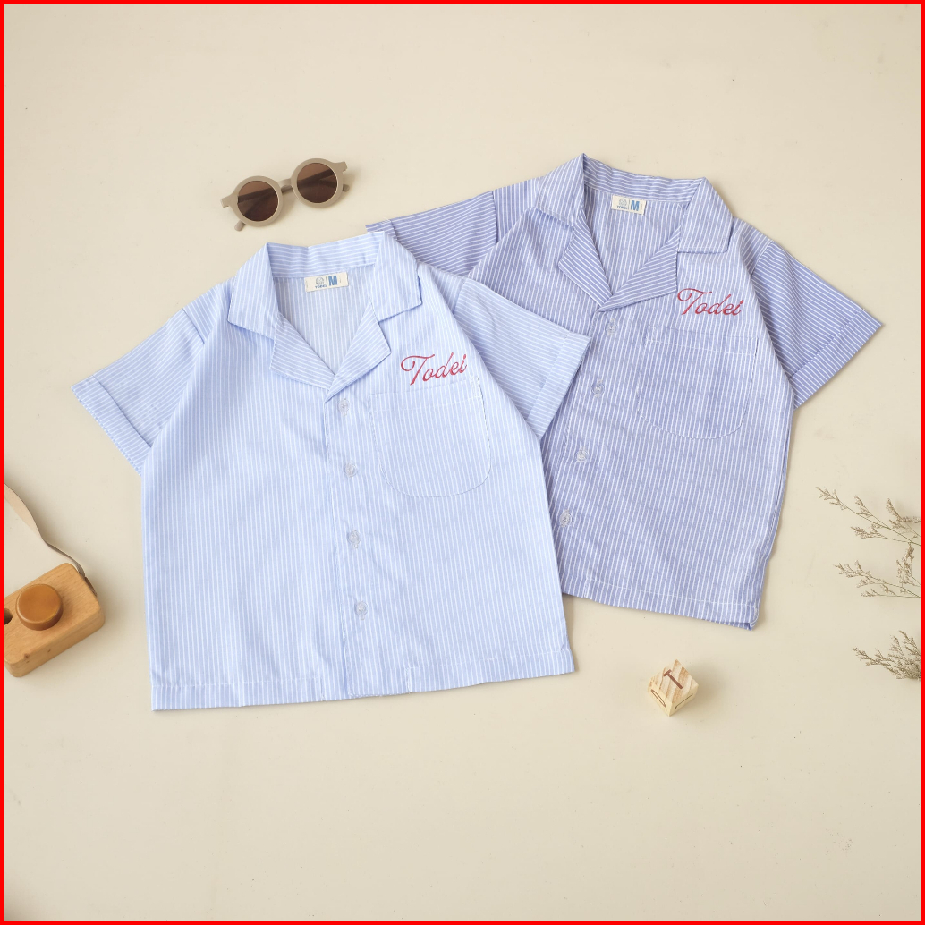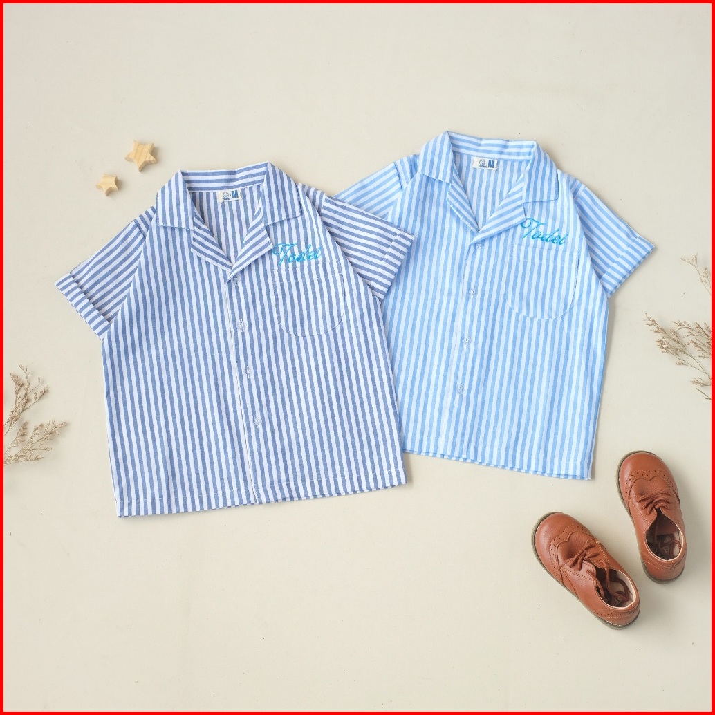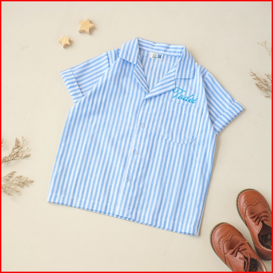Todei.kids Seto Shirt Kids Oversize Striped Shirt Kemeja Anak Garis-garis Lengan Pendek Kemeja Anak Laki Laki Katun Basi