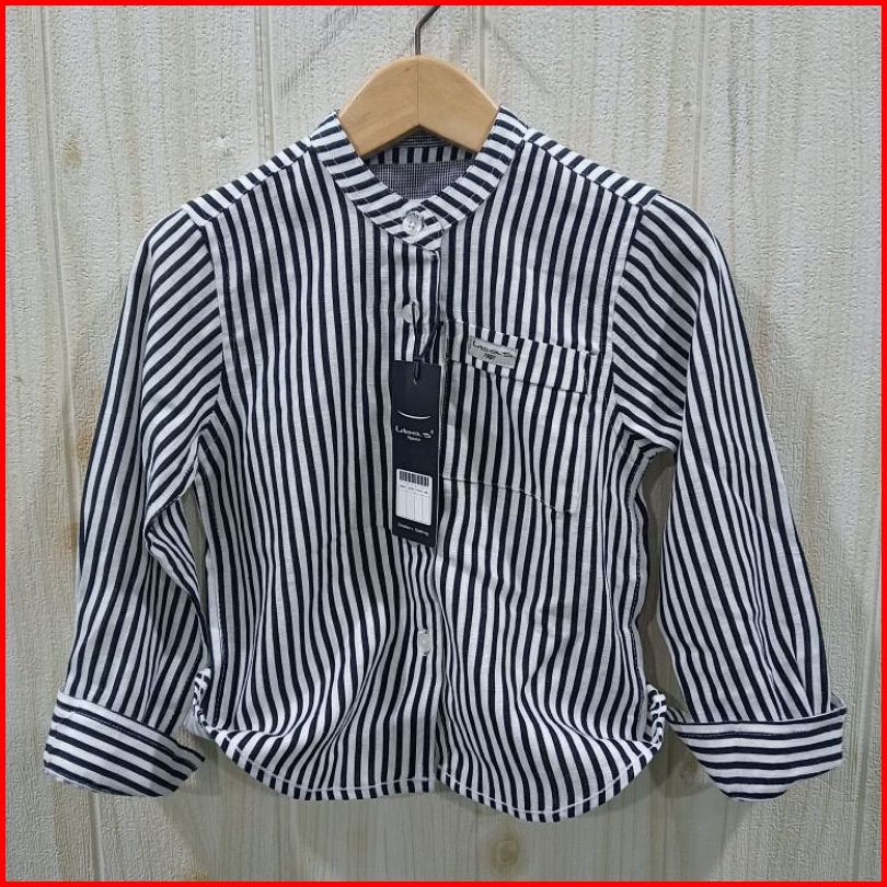 Kemeja Anak 1-13 Tahun Lengan Panjang Salur Warna Hitam Putih Bahan Katun Premium Super Adem By Libas