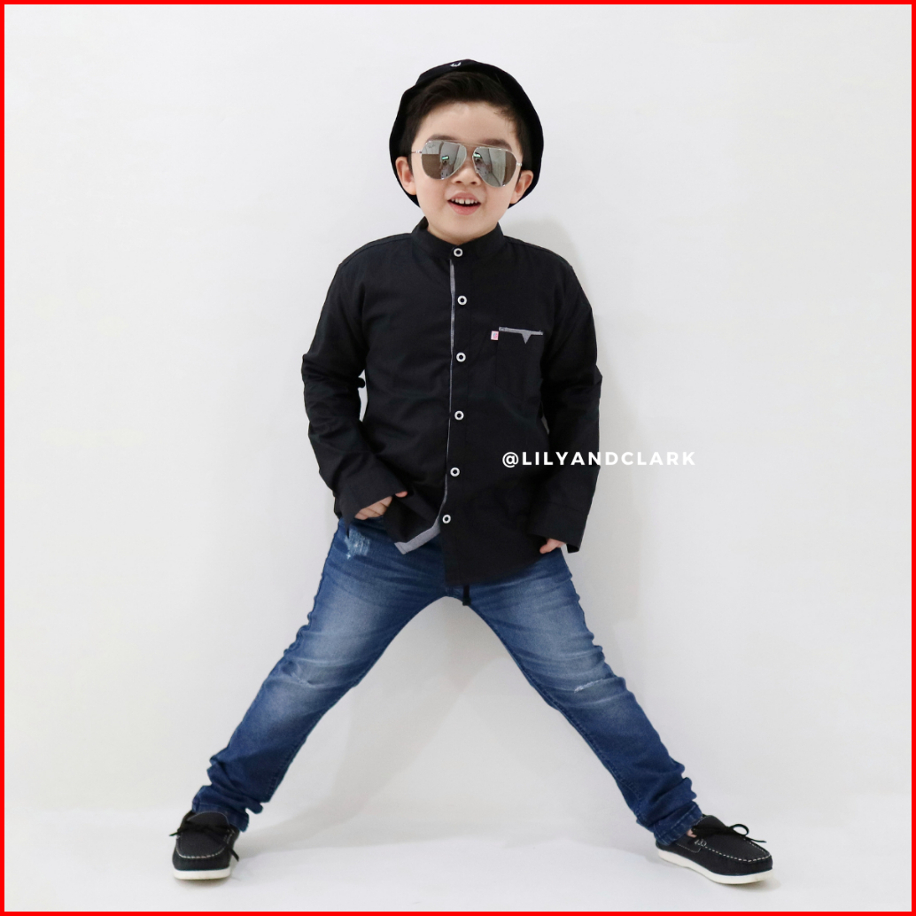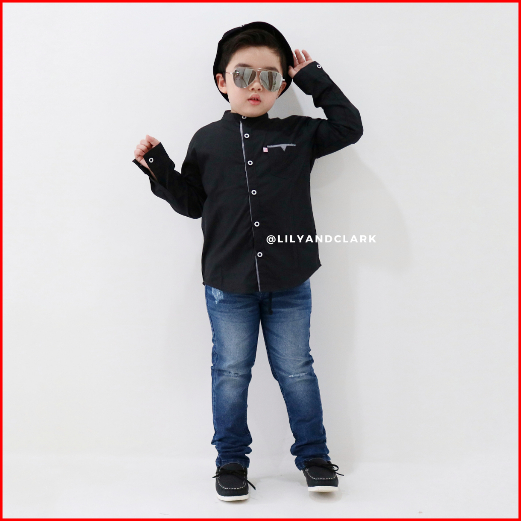 New Arrival Kemeja Panjang Anak Warna Hitam Bahan Adem By Lily And Clark Model Trendy Casual
