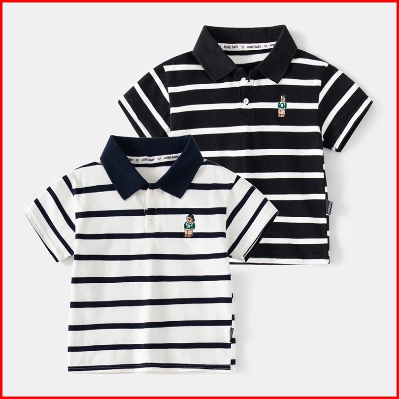 Polar Bear Stripe Top Baju Jalan Anak Laki Laki Kemeja Polo Anak