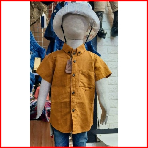 Kemeja Anak Warna Kuning Lengan Pendek Bahan Katun Uniqlo Premium Usia 1-16 Tahun