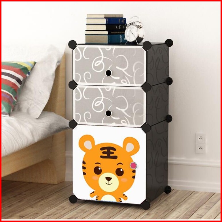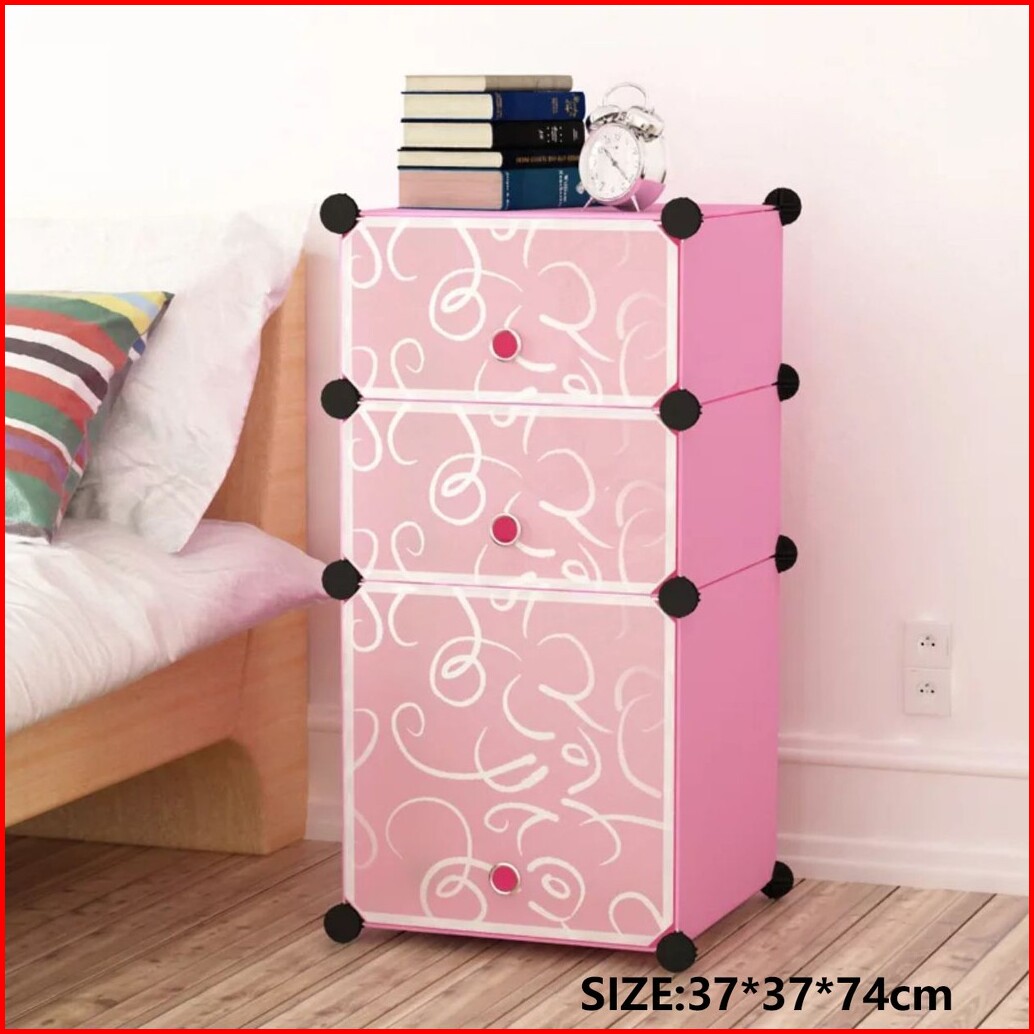 Lemari Plastik Bedside Table Anti Air Rak Buku Rak Susun 3 Pintu Kotak