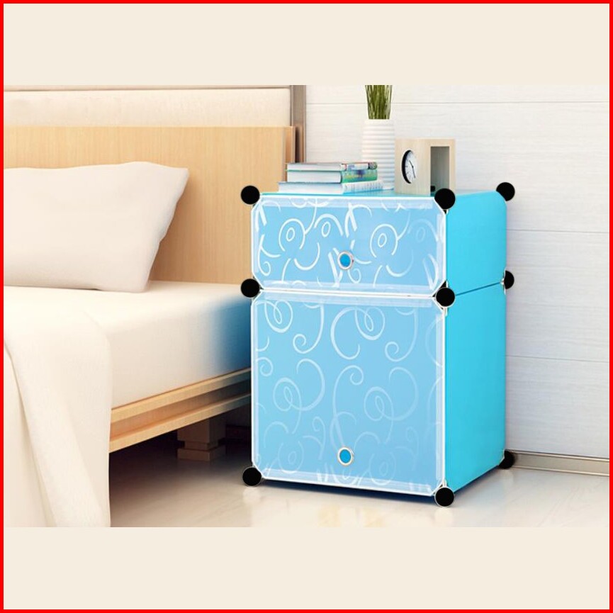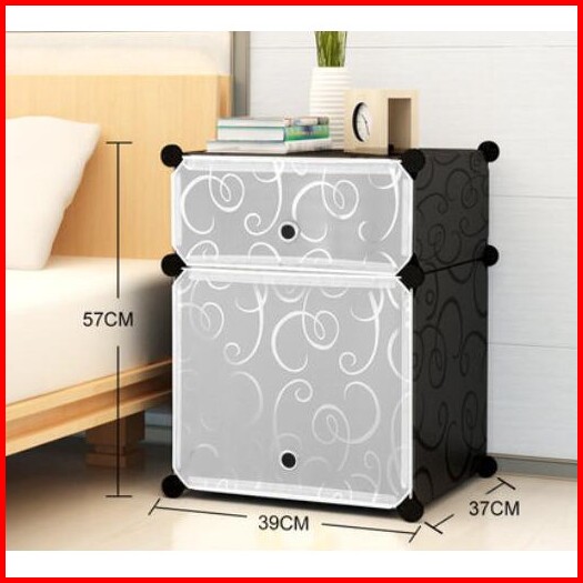Lemari Plastik Bedside Table Rak Serbaguna Rak Buku 2 Susun Pintu Kotak
