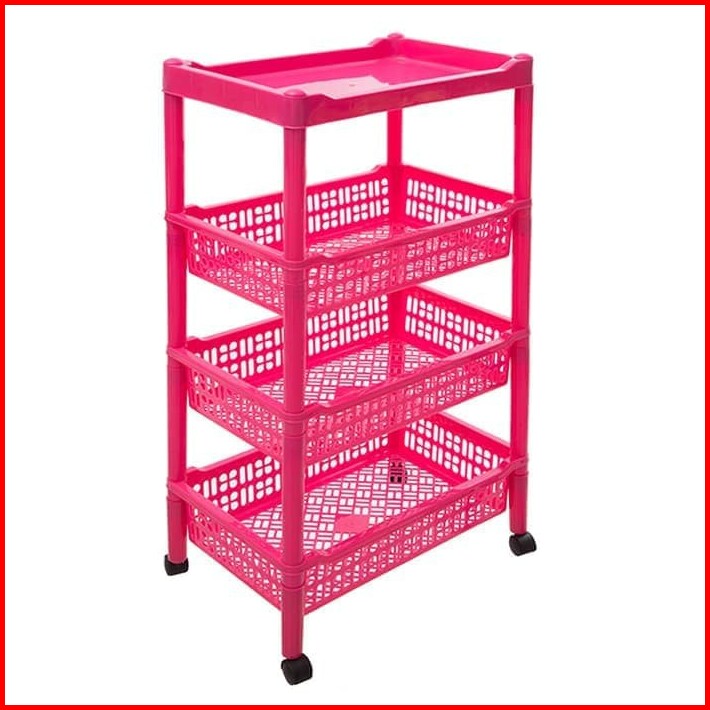Shinpo Plastik C4 Rak Megalo Susun 4 Dengan Roda Salon Rumah Serbaguna