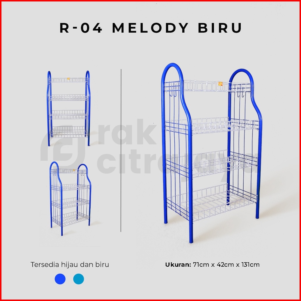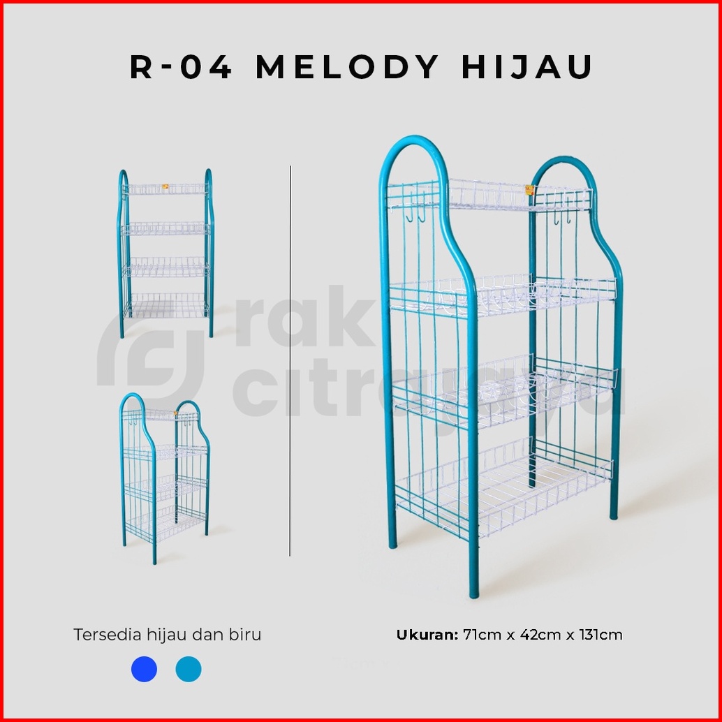 R-04 Melody Biru Hijau Rak Piring Rak Dapur Susun 4