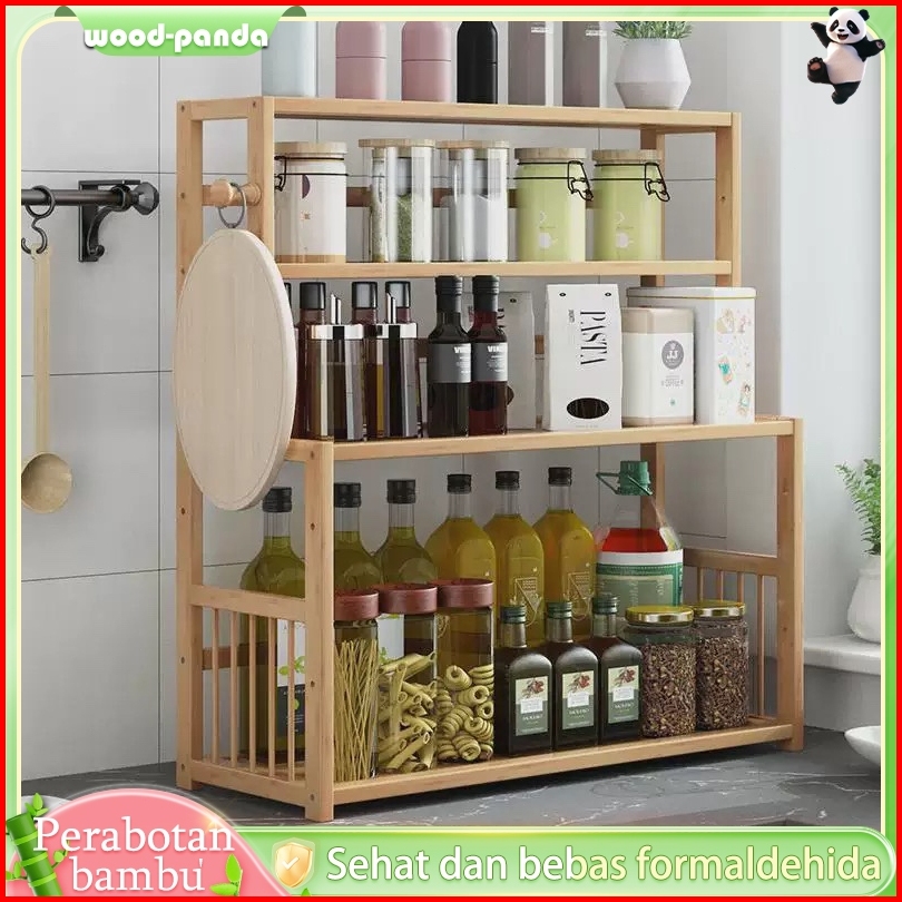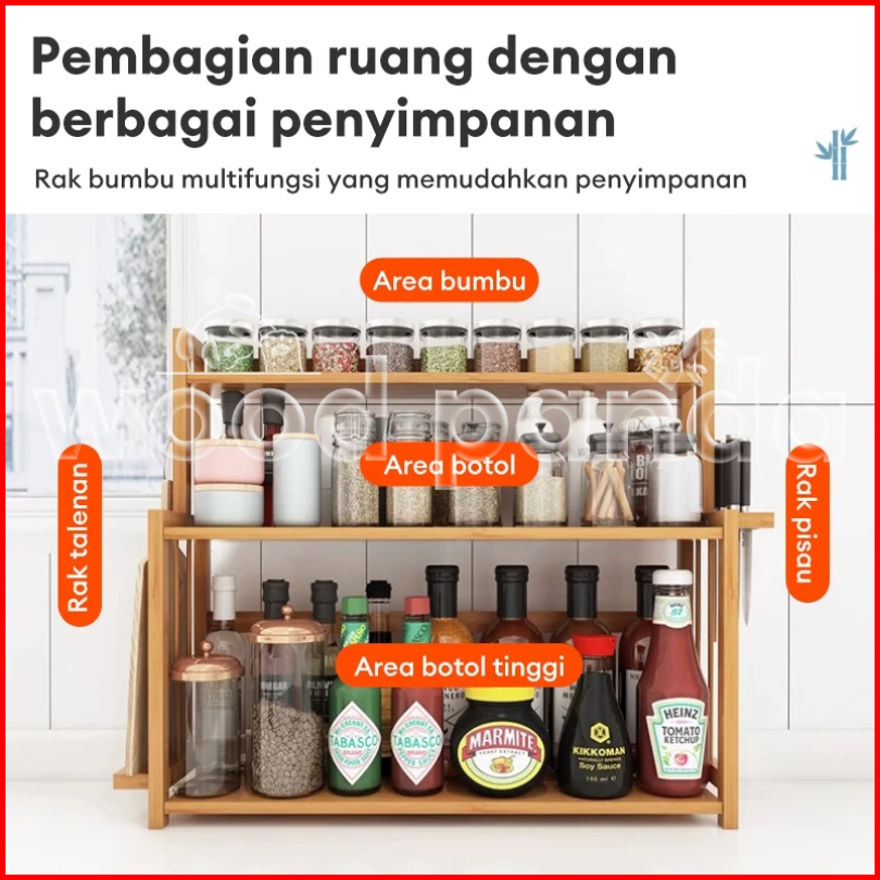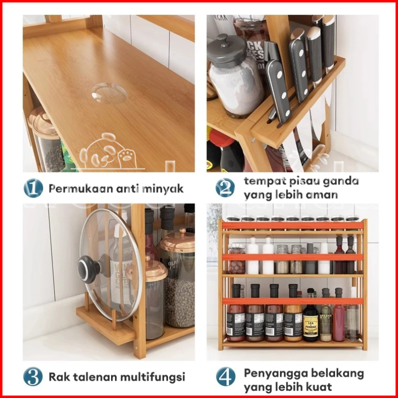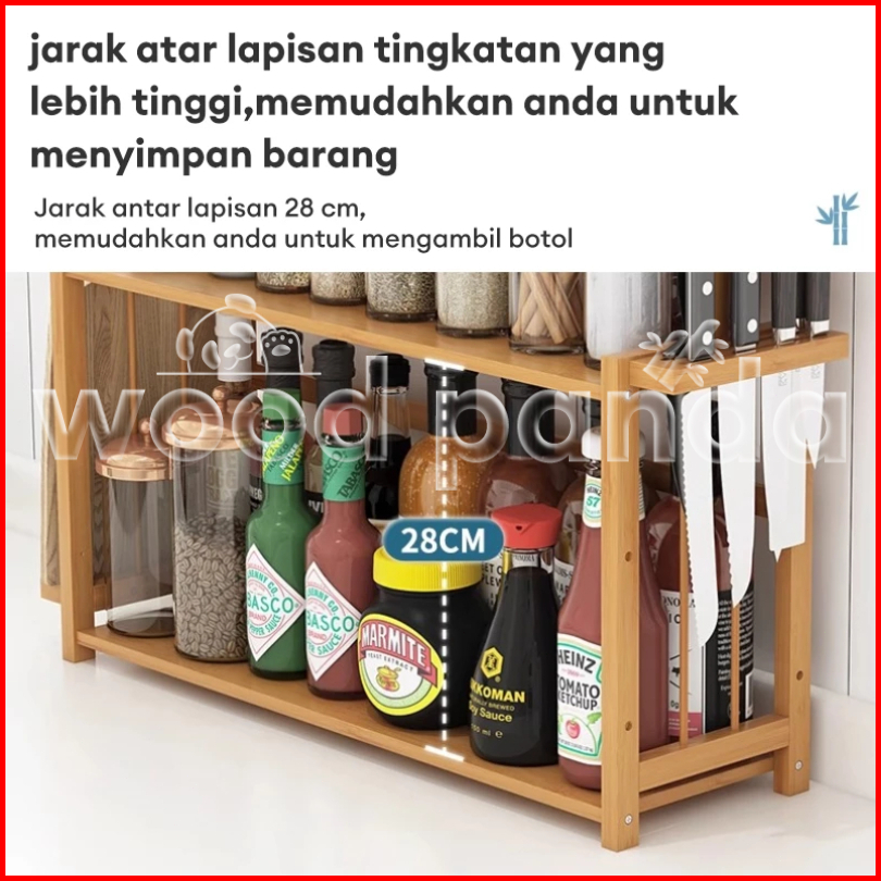 Rak Dapur Serba Guna Rak Bumbu Dapur Tempat Bumbu Kayu 2 Susun Bambu Rak Botol Bumbu Rak Penyimpanan