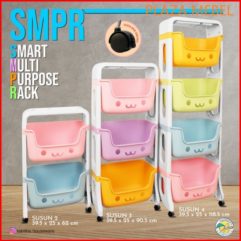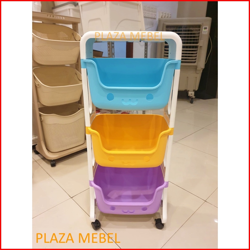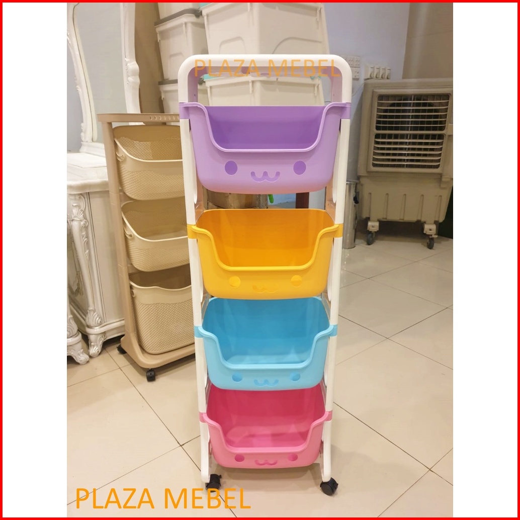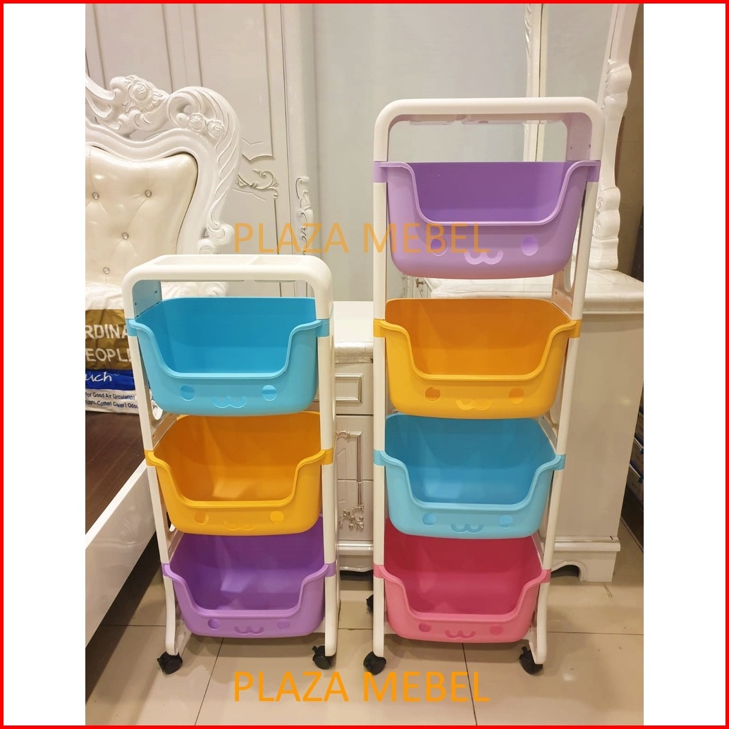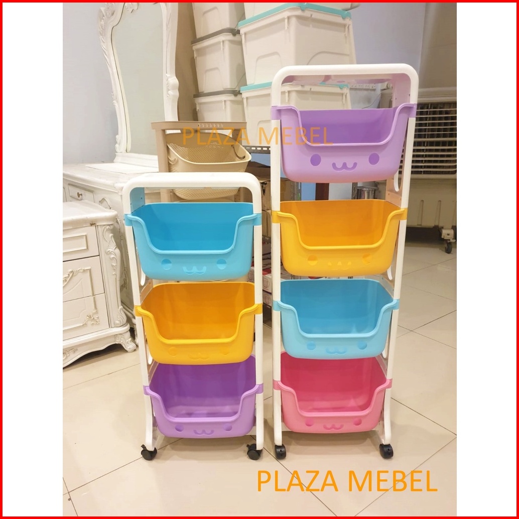 Rak Tabitha Serbaguna Anak Plastik Susun 3 - 4 Rak Mainan Roda Lucu