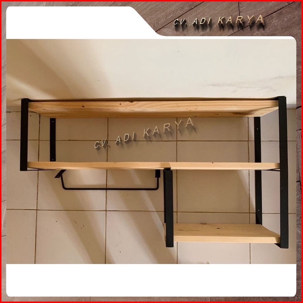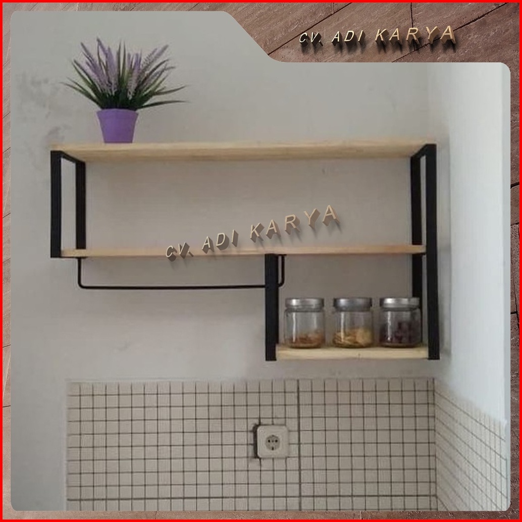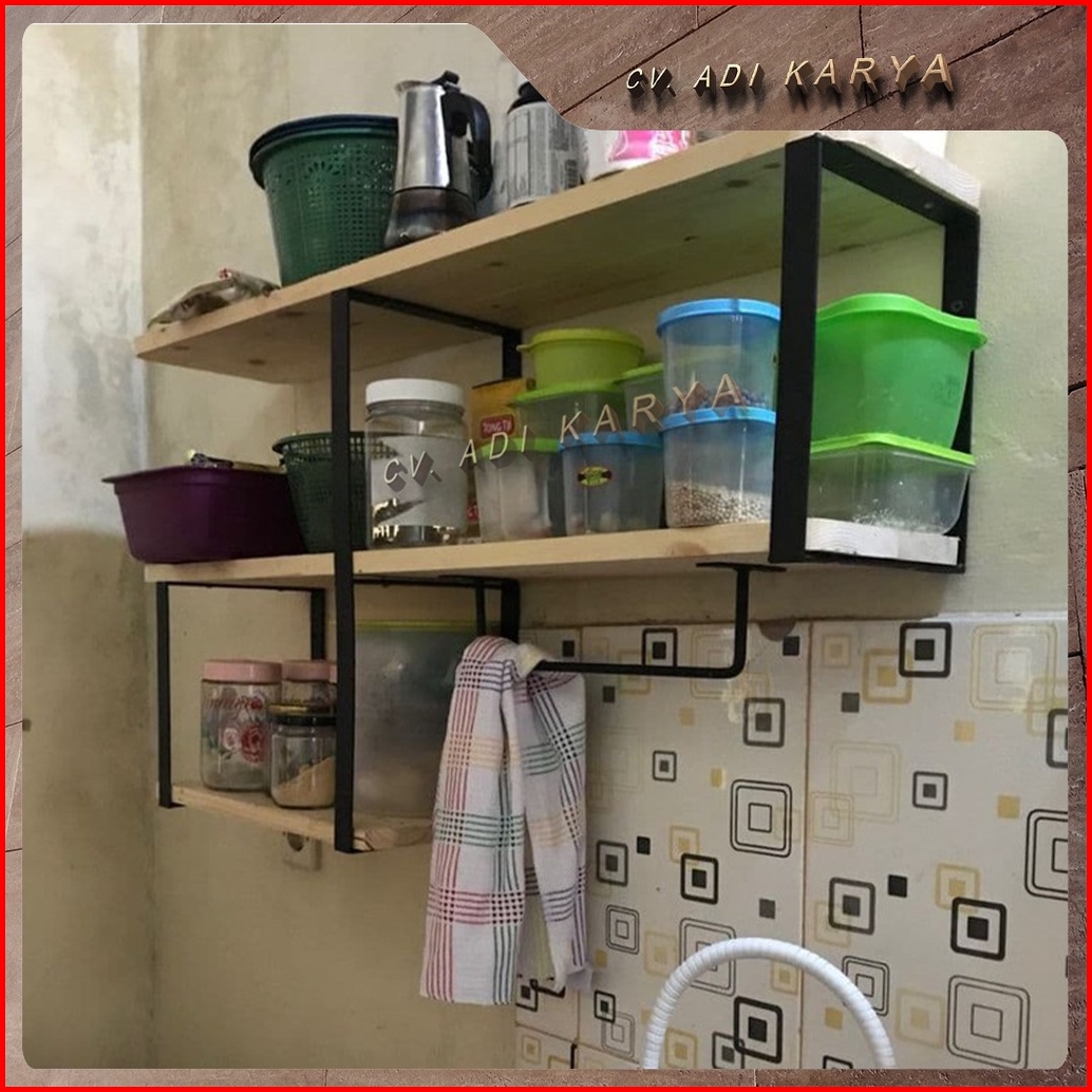 Rak Dapur Serbaguna Tempel Dinding Minimalis Susun Kayu Besi Multifungsi Rak Bumbu Dapur Dinding Susun Kayu Gantung Kitc