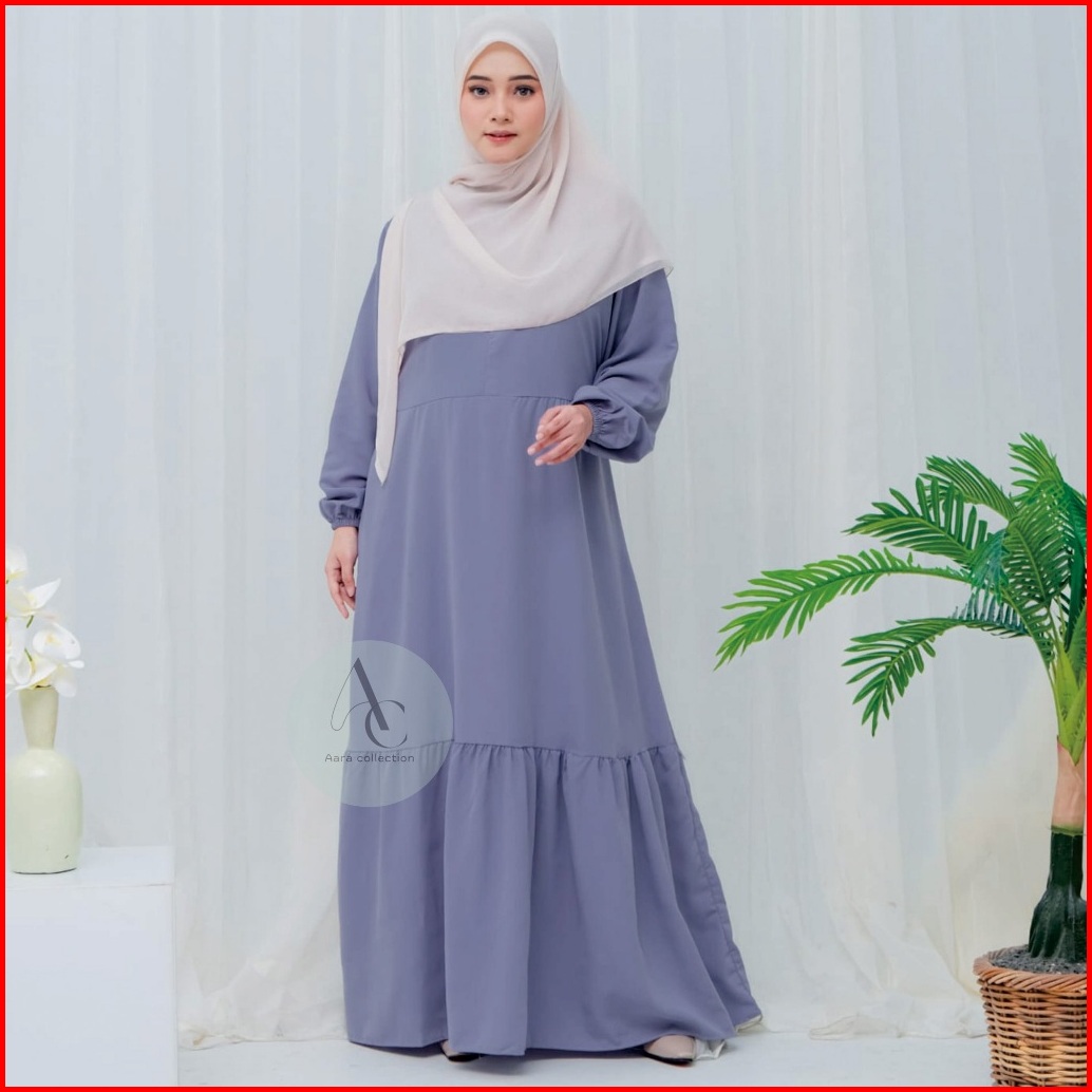 Aara Collection Gamis Lengan Karet Long Dress Gamis Serut Lengan Karet