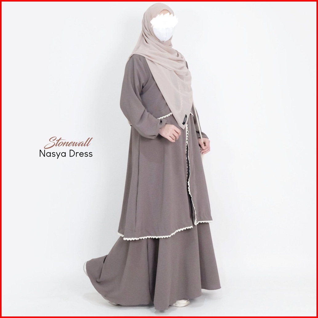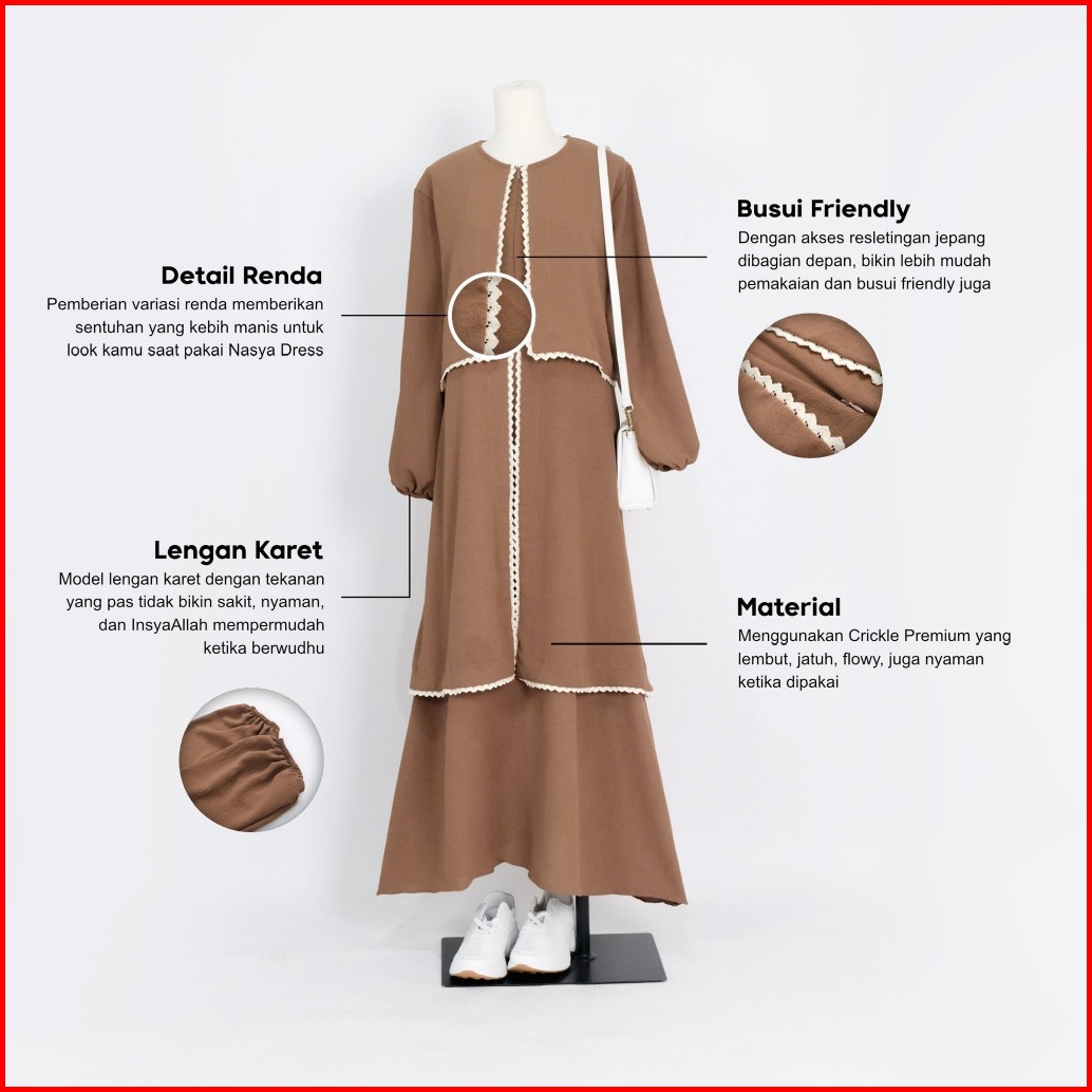 Mininos Nasya Dress Gamis Crinkle Renda Terbaru Remaja Muslimah 2024