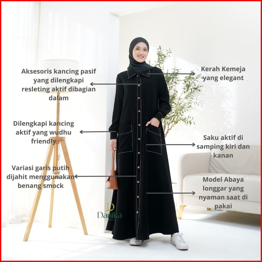 Rania Dress Abaya Gamis Wanita Remaja Dewasa Anti Uv Jetblack Premium Size M-xxl By Danika Luxury