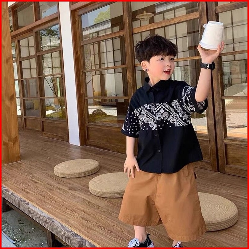 Lcs235 Atasan Kemeja Batik Anak Laki Laki Lengan Pendek Baju Anak Remaja Tanggung