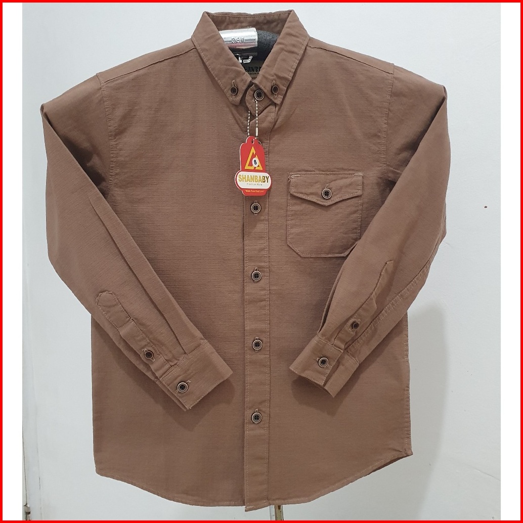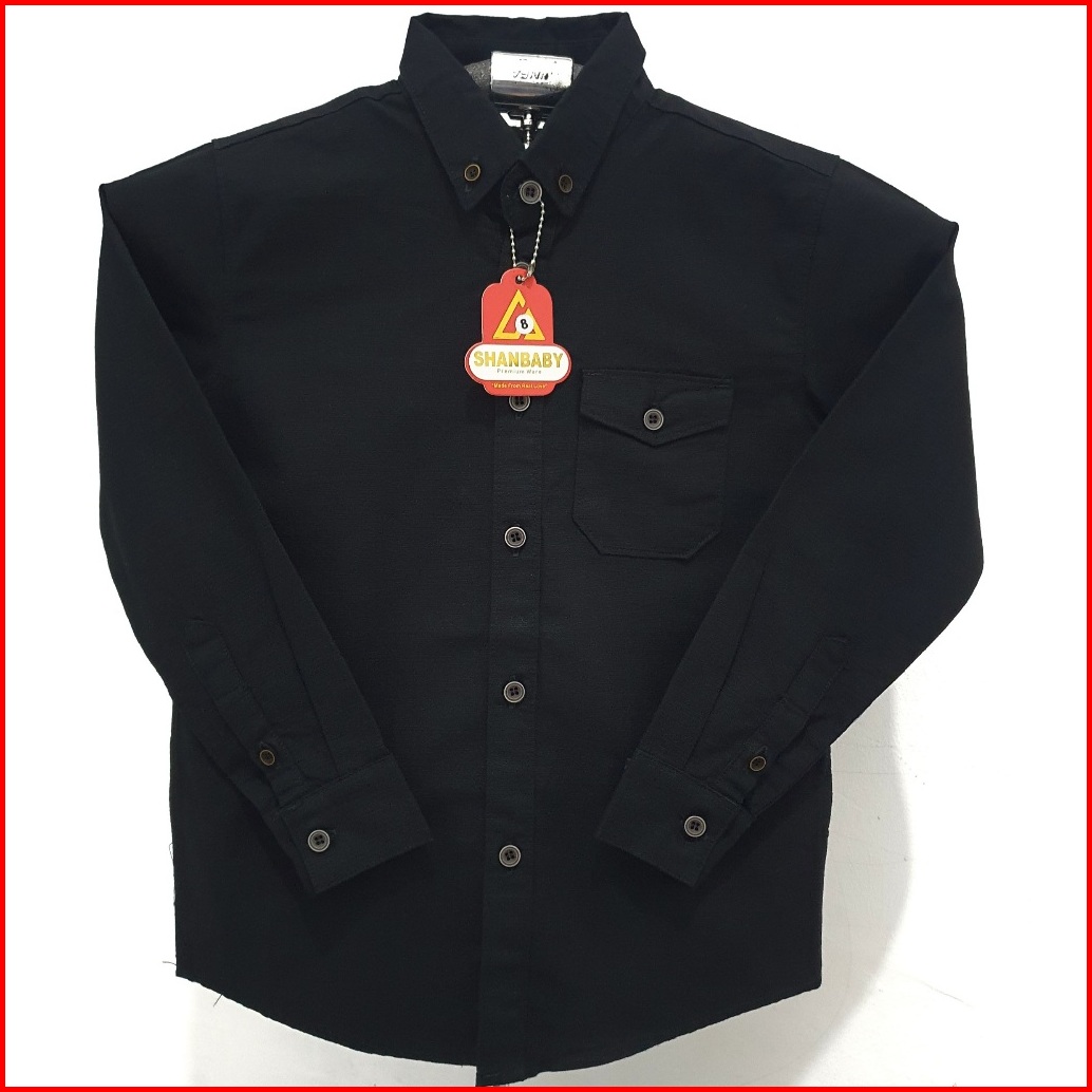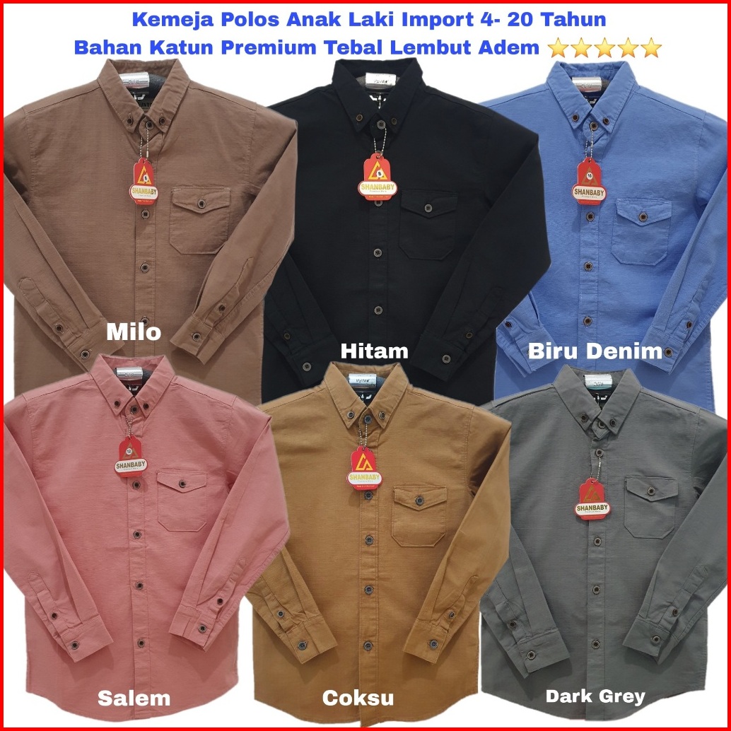 Kemeja Polos Panjang Anak Laki Import 5-20tahun Hem Katun Remaja Tanggung Coklat Milo Salem Biru Denim Hitam
