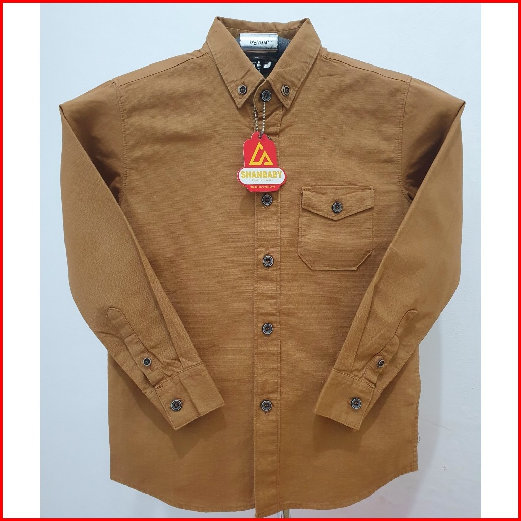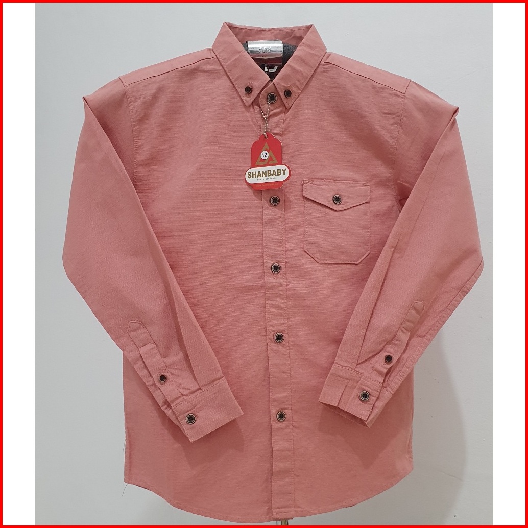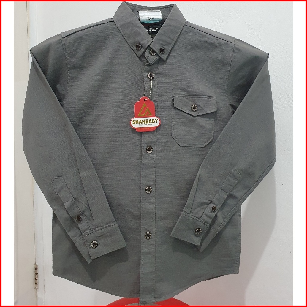 Kemeja Polos Panjang Anak Laki Import 5-20tahun Hem Katun Remaja Tanggung Coklat Milo Salem Biru Denim Hitam