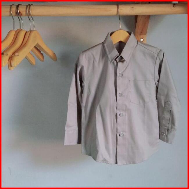 Gratis Dasi Kemeja Anak Abu-abu Lengan Panjang