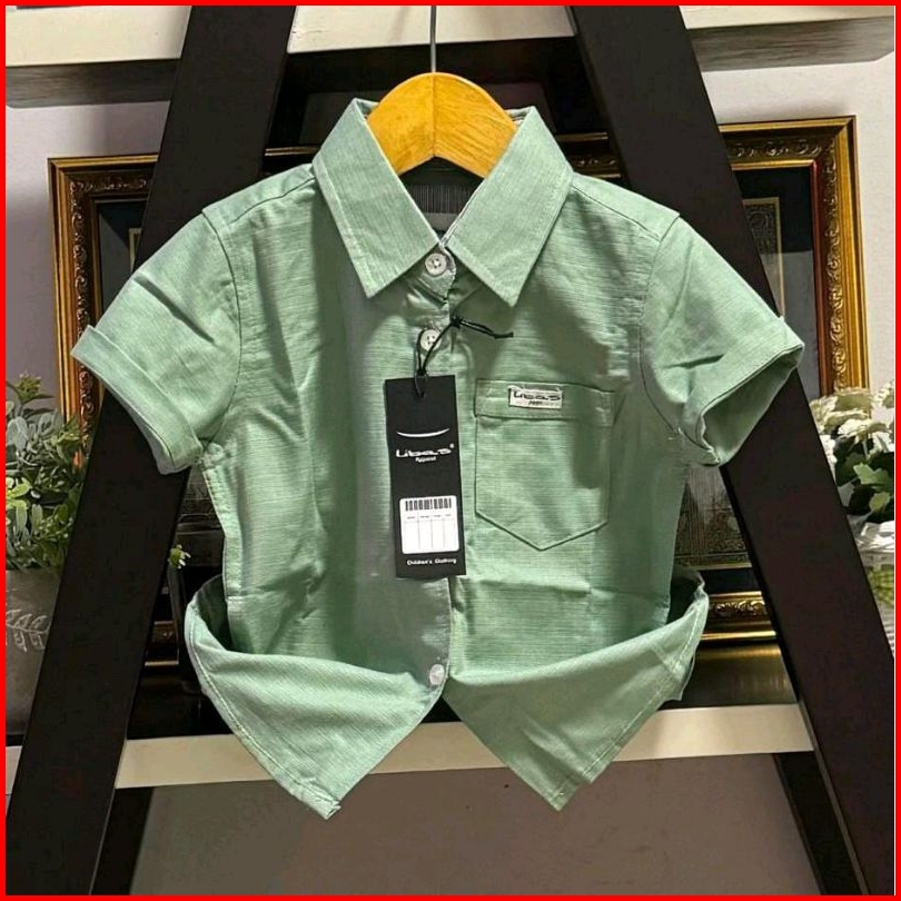 Kemeja Anak Laki - Laki 1-13 Tahun Polos Lengan Pendek Hijau Sage By Libas