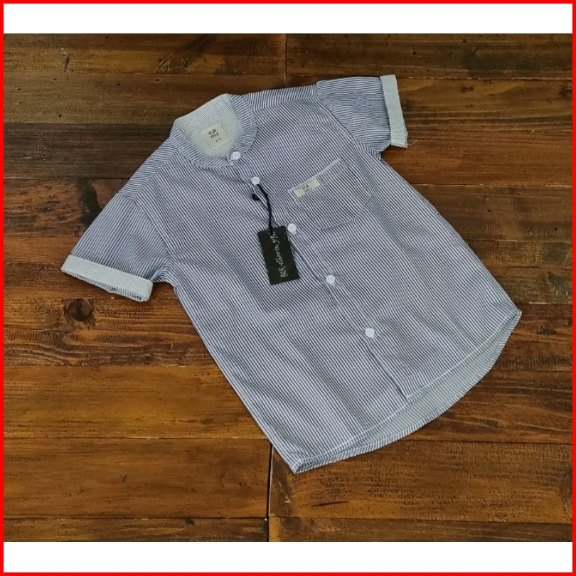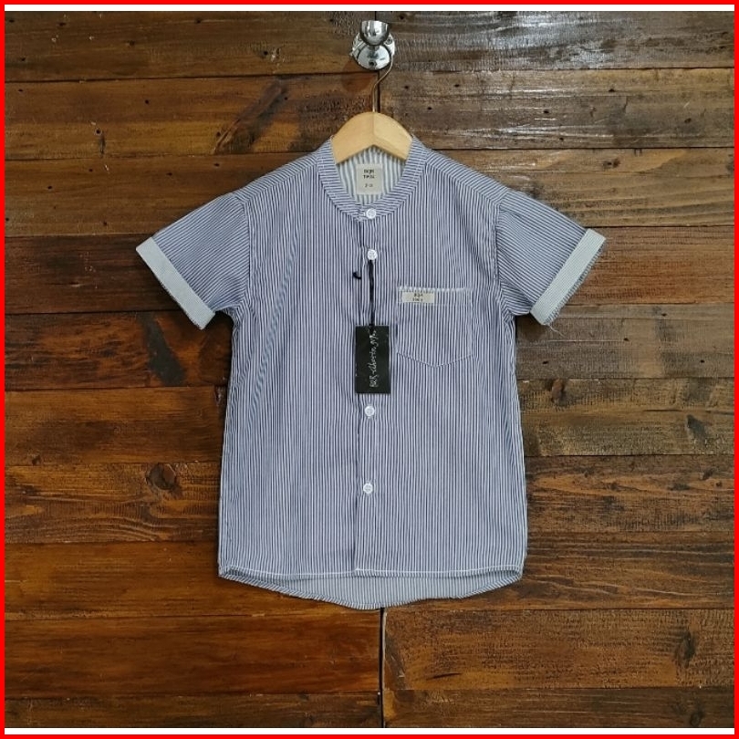 Kemeja Anak Motif Salur Kecil Lengan Pendek By Bqr-clhoting1902 Atasan Kokoh By Bqr