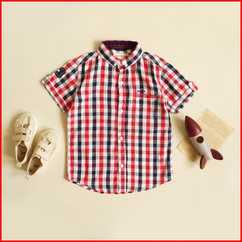 Zeankids Kemeja Anak Laki Laki Motif Kotak Kombinasi