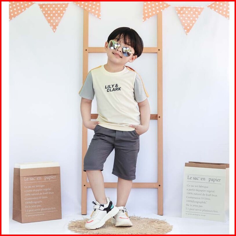 Lily And Clark Kaos Anak Laki Laki Terbaru Klc30 Warna Cream Combine Abu Adem Dan Stylish Untuk Ootd