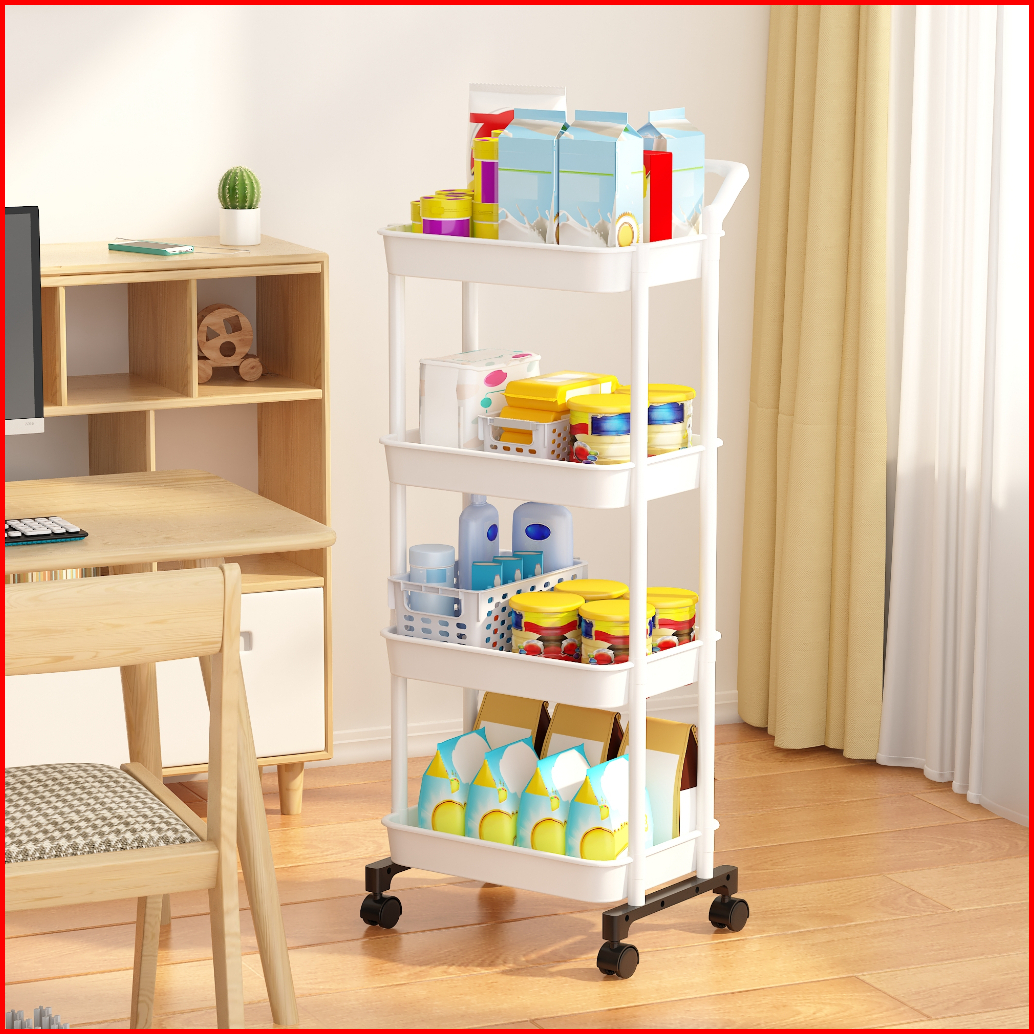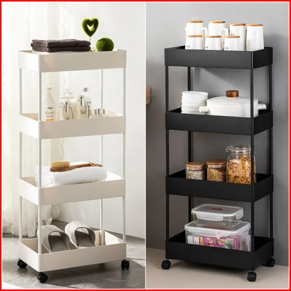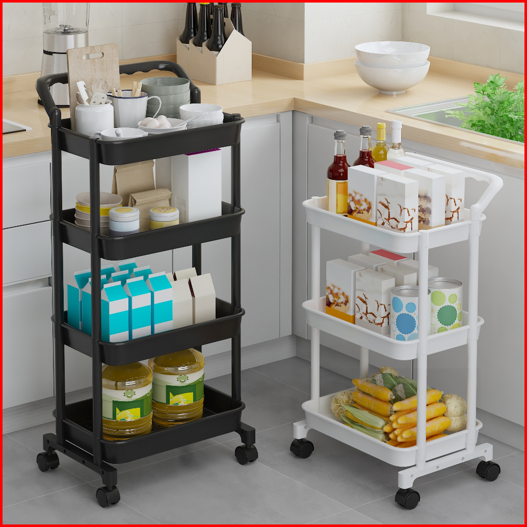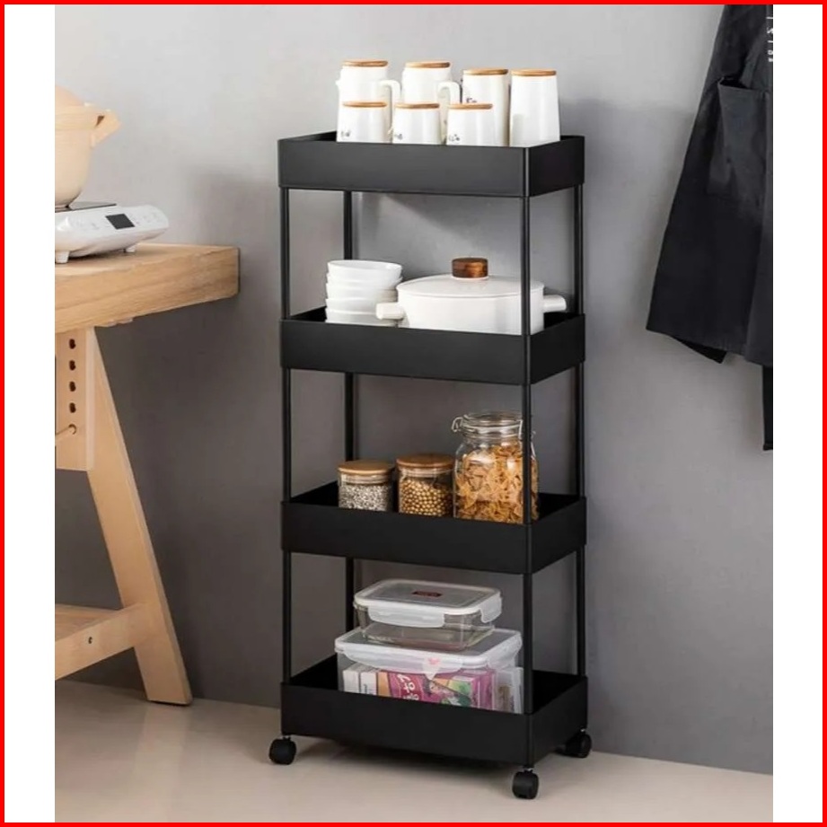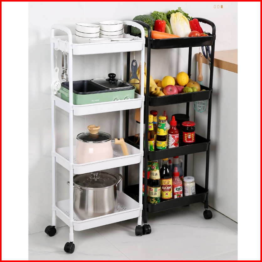 Mesh Rak Dapur Rak Toilet Rak Susun Serbaguna Rak Dorong Rak Salon Rak Troli 4 Ringkat Dengan Roda