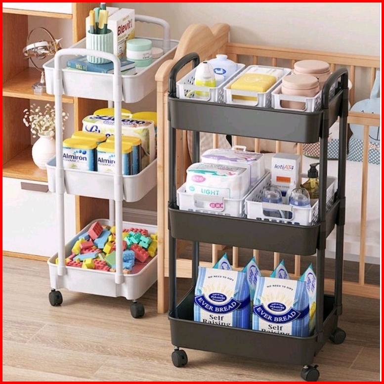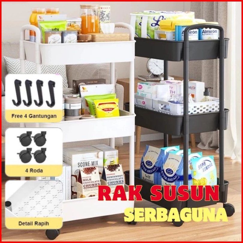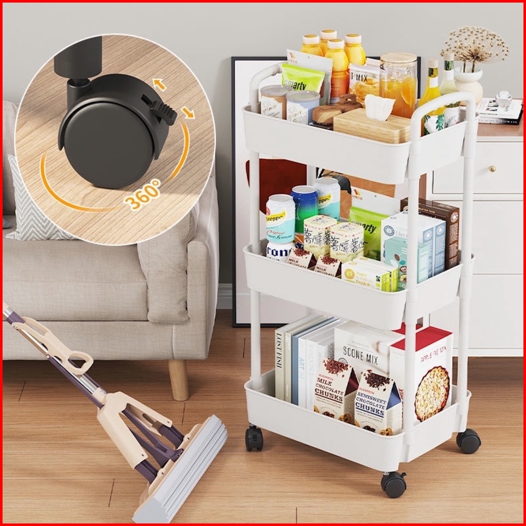 Shenar Rak Troli Serbaguna 3 Susun Serbaguna Rak Dapur Rak Salon Rak Kamar Mandi Dengan Roda Dan Pegangan Tempat Penyimp