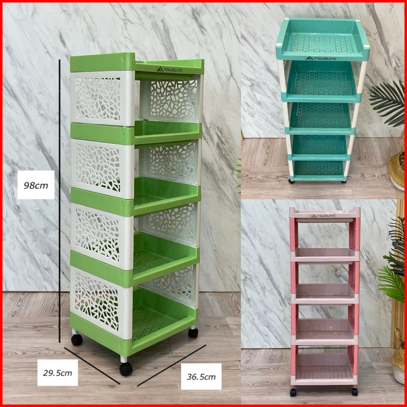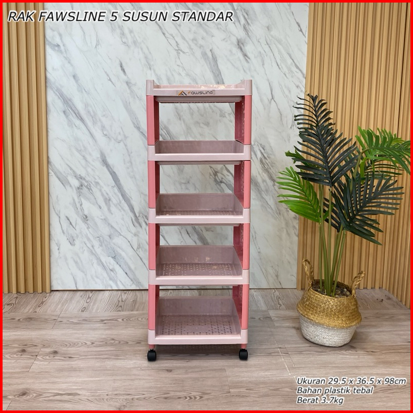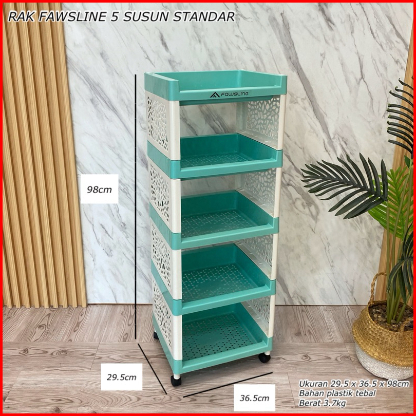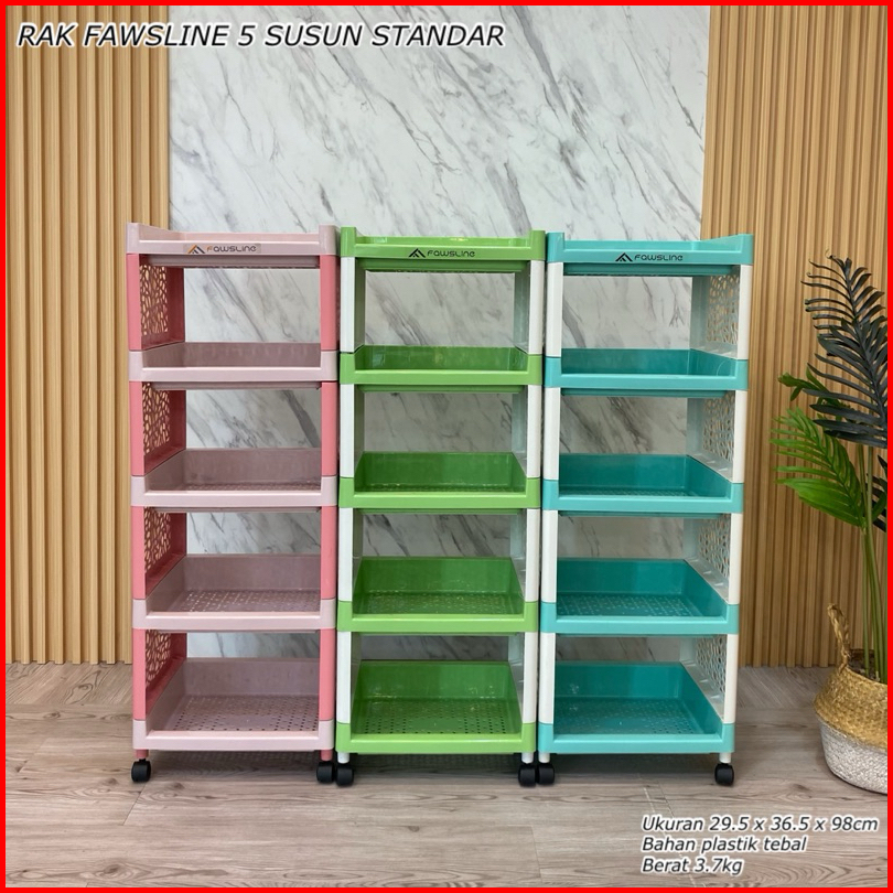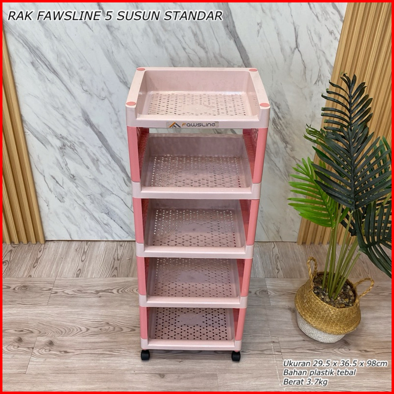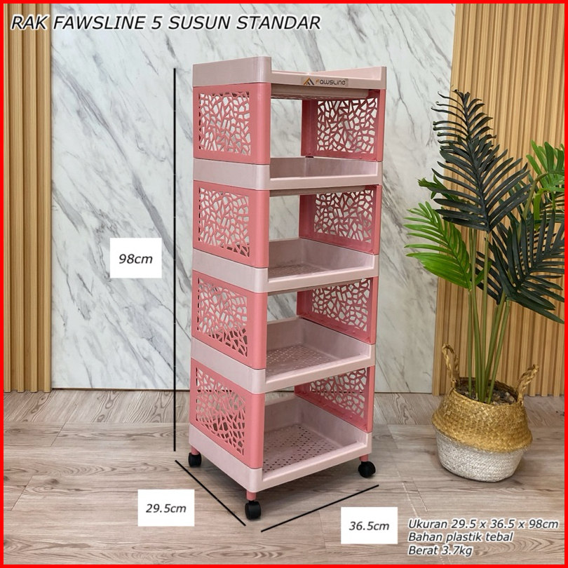 Rak Fawsline 5 Susun Roda Rak Troly 5 Tingkat Rak 5 Susun Serbaguna Rak Plastik Portable 5 Tingkat Rak Dorong Rak Dapur