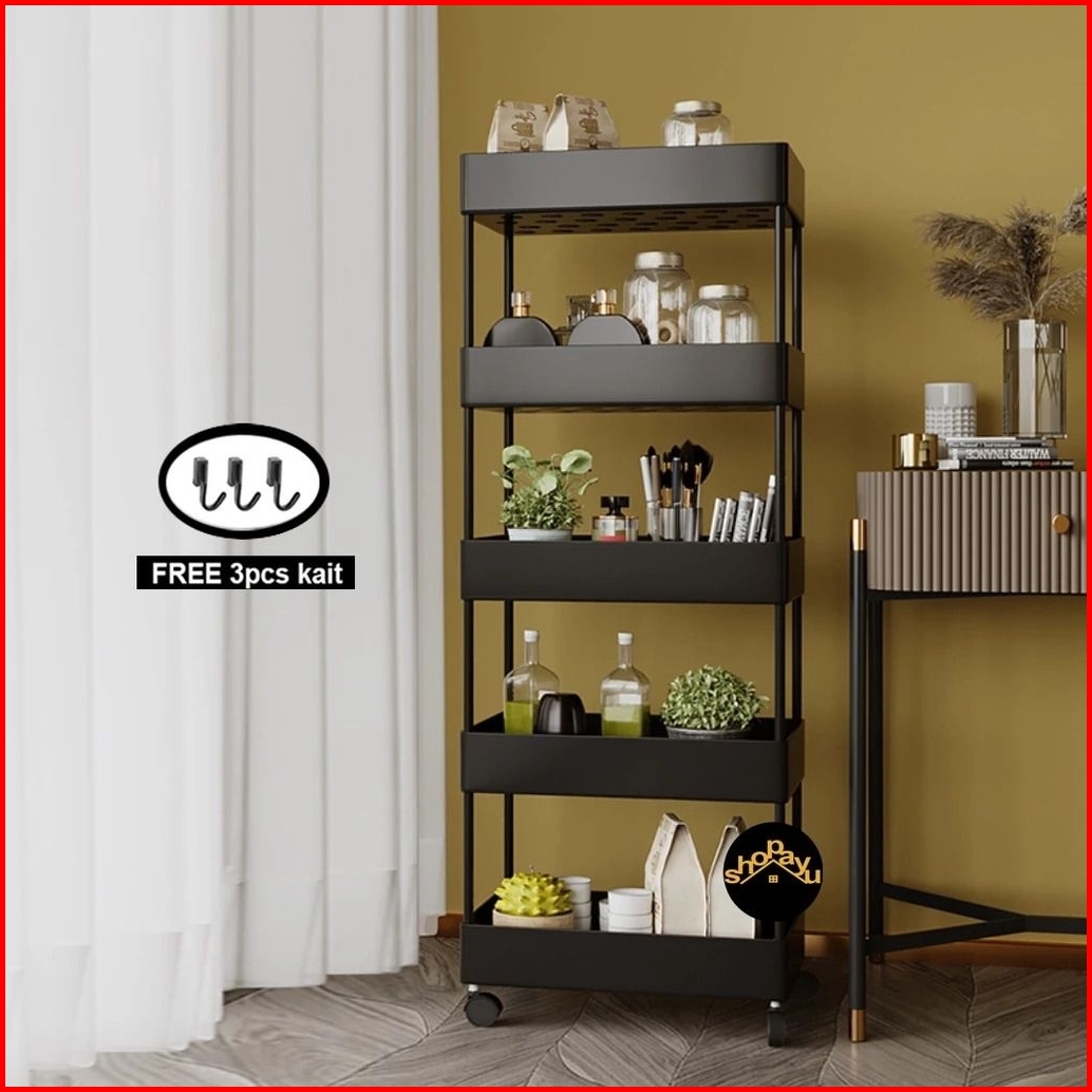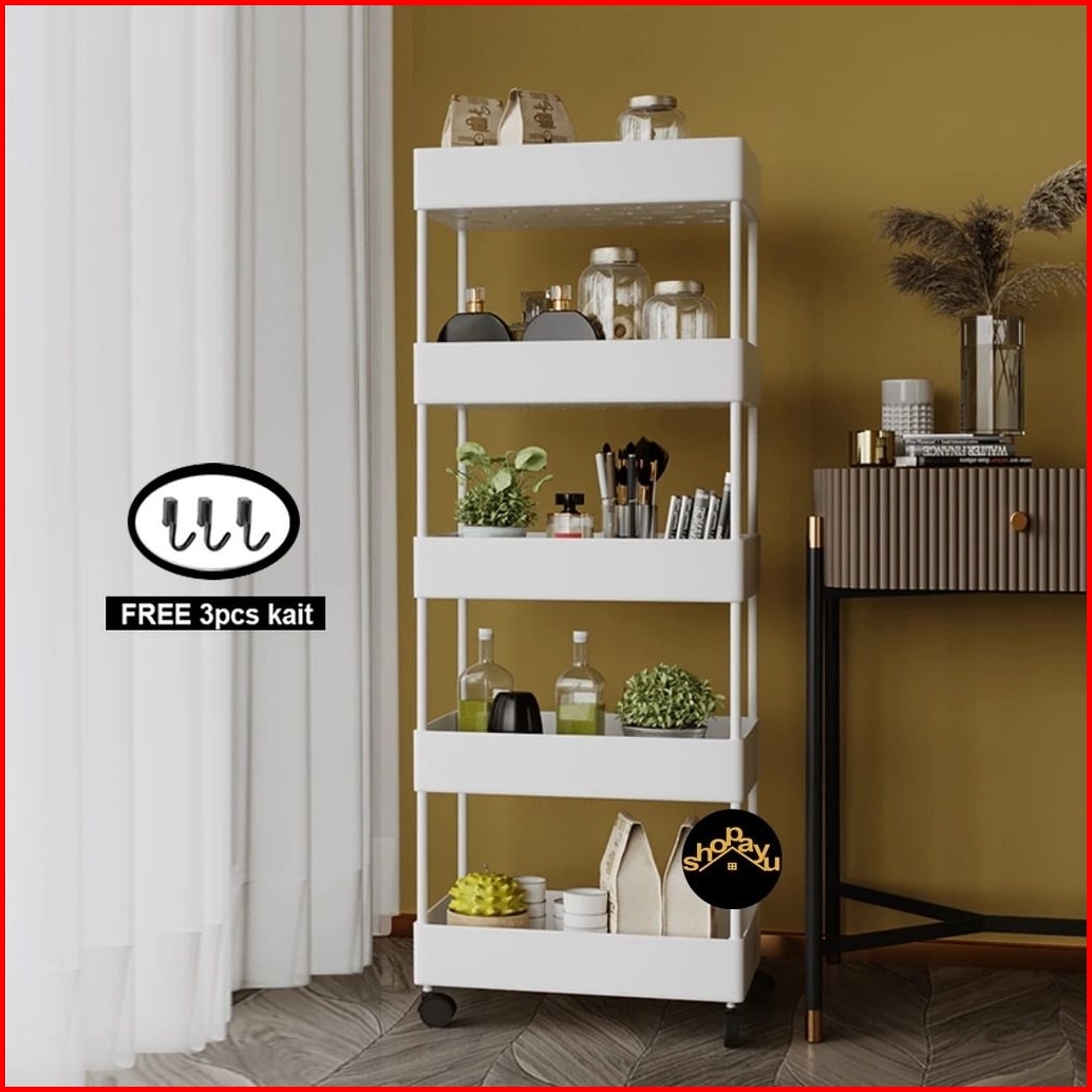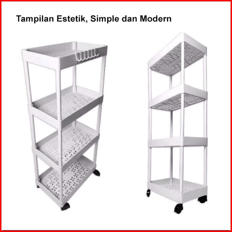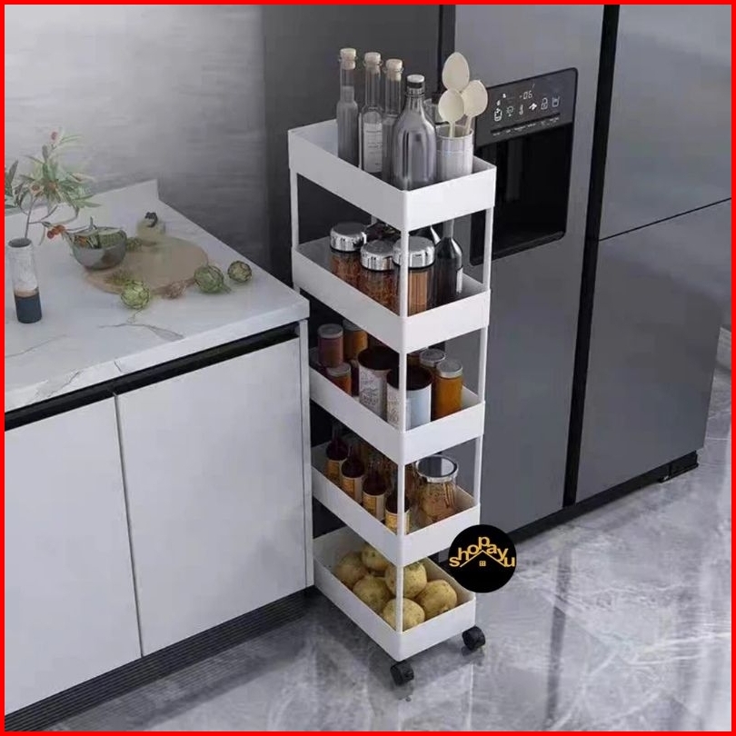 Rak Troli Square Rak Dapur Rak Serbaguna 4 Dan 5 Tingkat Dengan Roda
