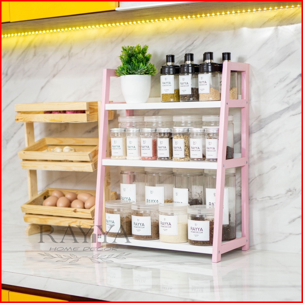 Besar Rak Bumbu Dapur Serbaguna 3 Susun Jumbo Rak Kosmetik Rak Pawon Rak Kayu Multifungsi