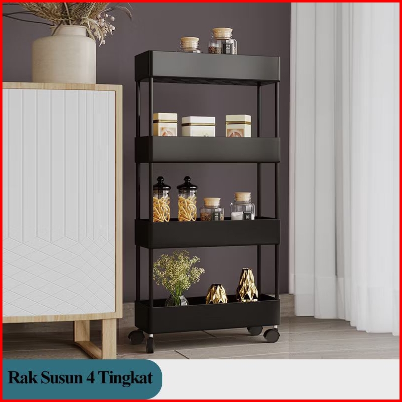 Rak Troli Plastik Rak Kamar Mandi Rak Dapur Serbaguna Dengan Roda