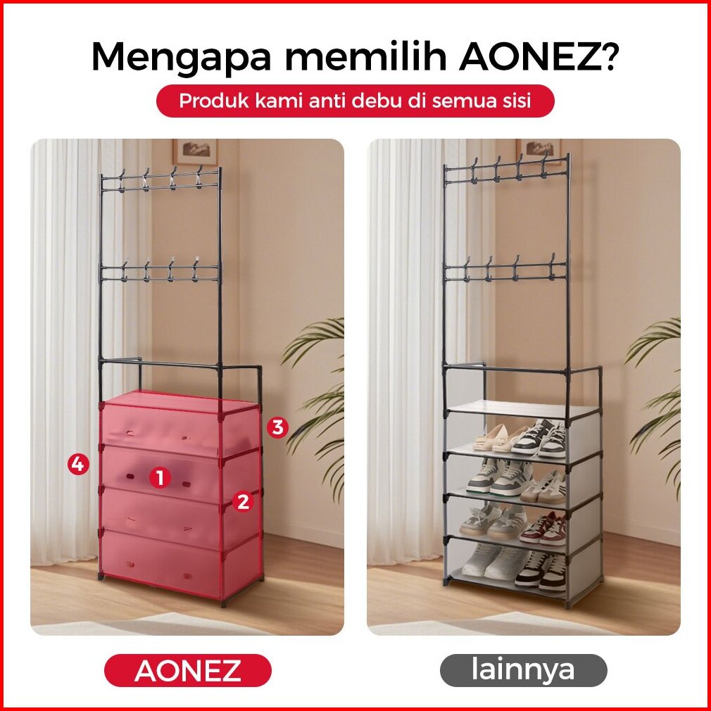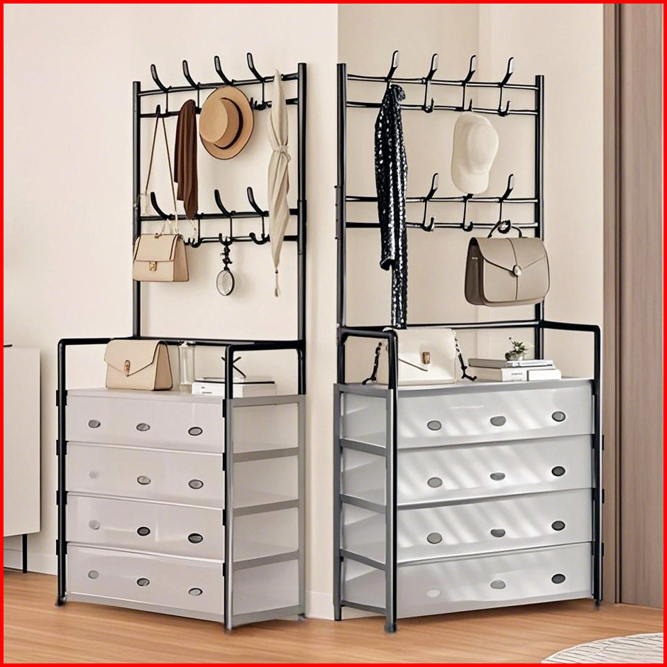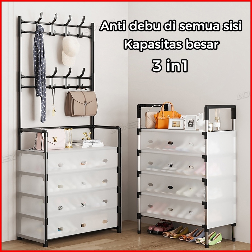 Codconfigear Rak Sepatu Tertutup Anti Debu Serbaguna Rak Penyimpanan Dengan Penutup Gantungan Tas Pakaian Baju Stand Han