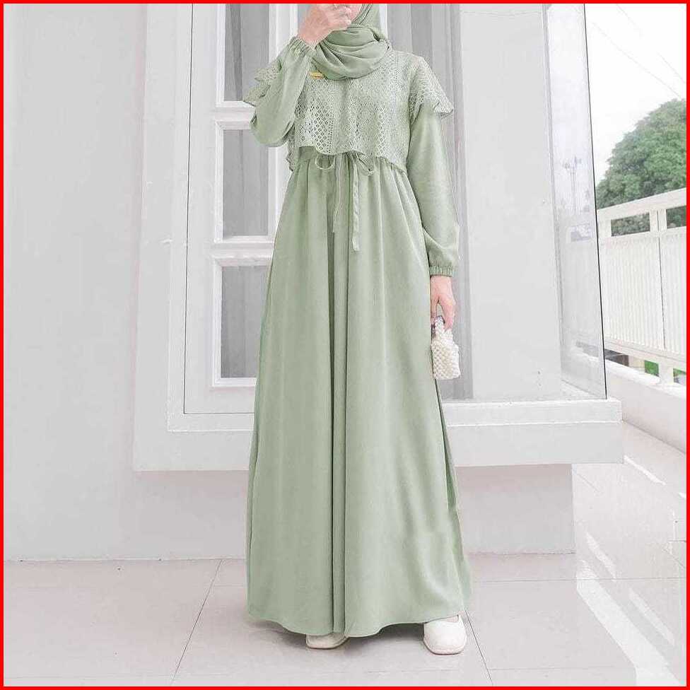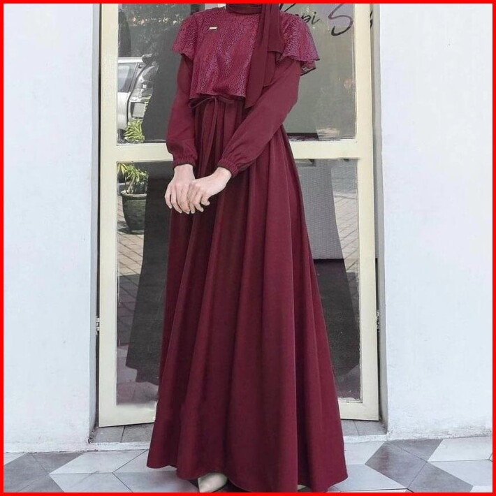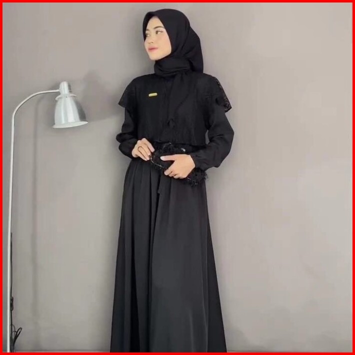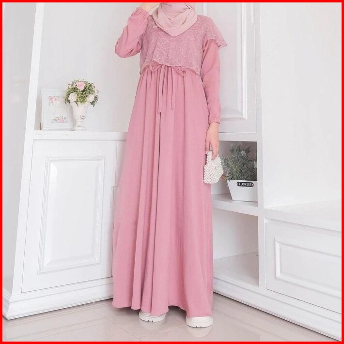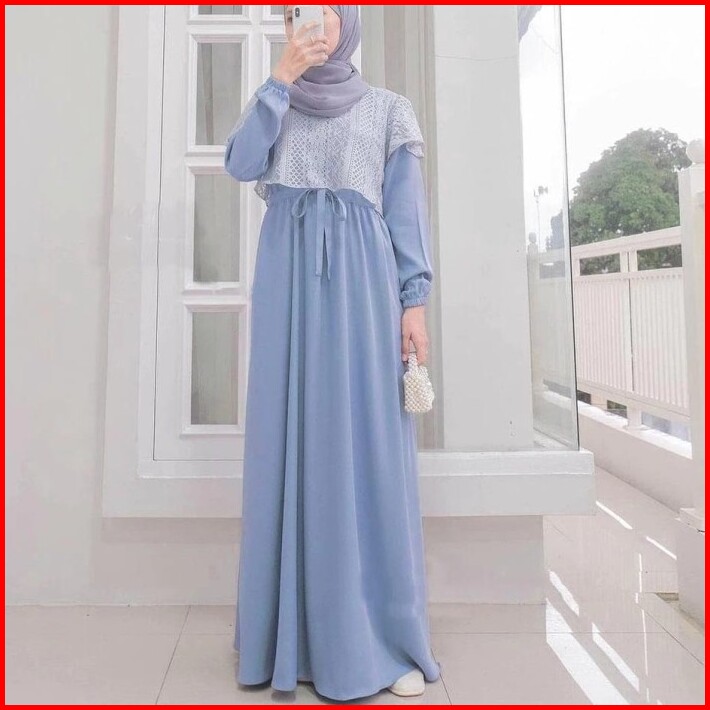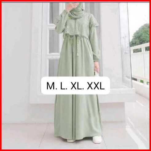 M.l.xl.xxl Gamis Wanita Remaja Bahan Cringkle Mix Brokat Malika Muat Bb 45-80