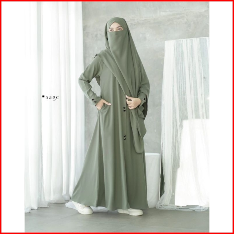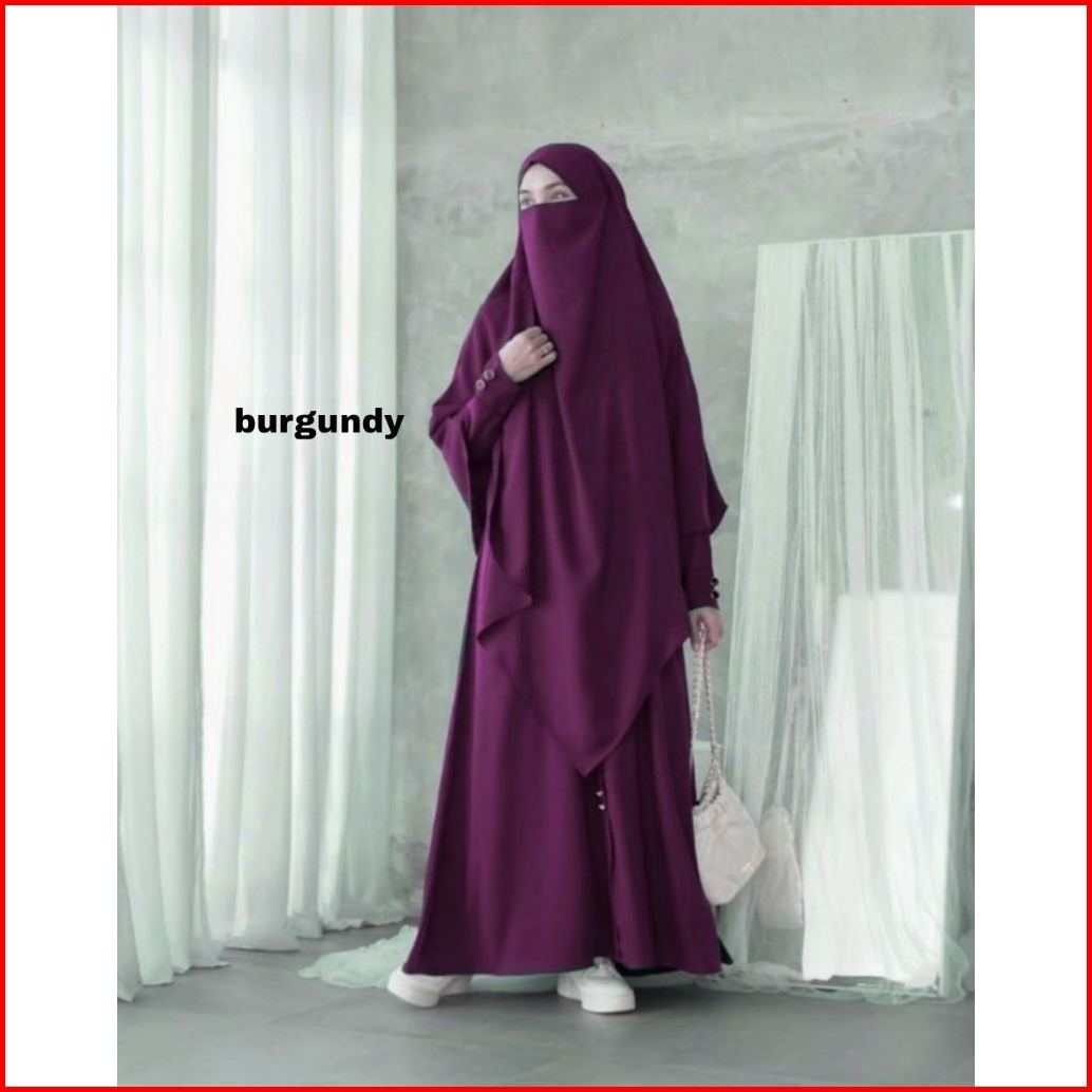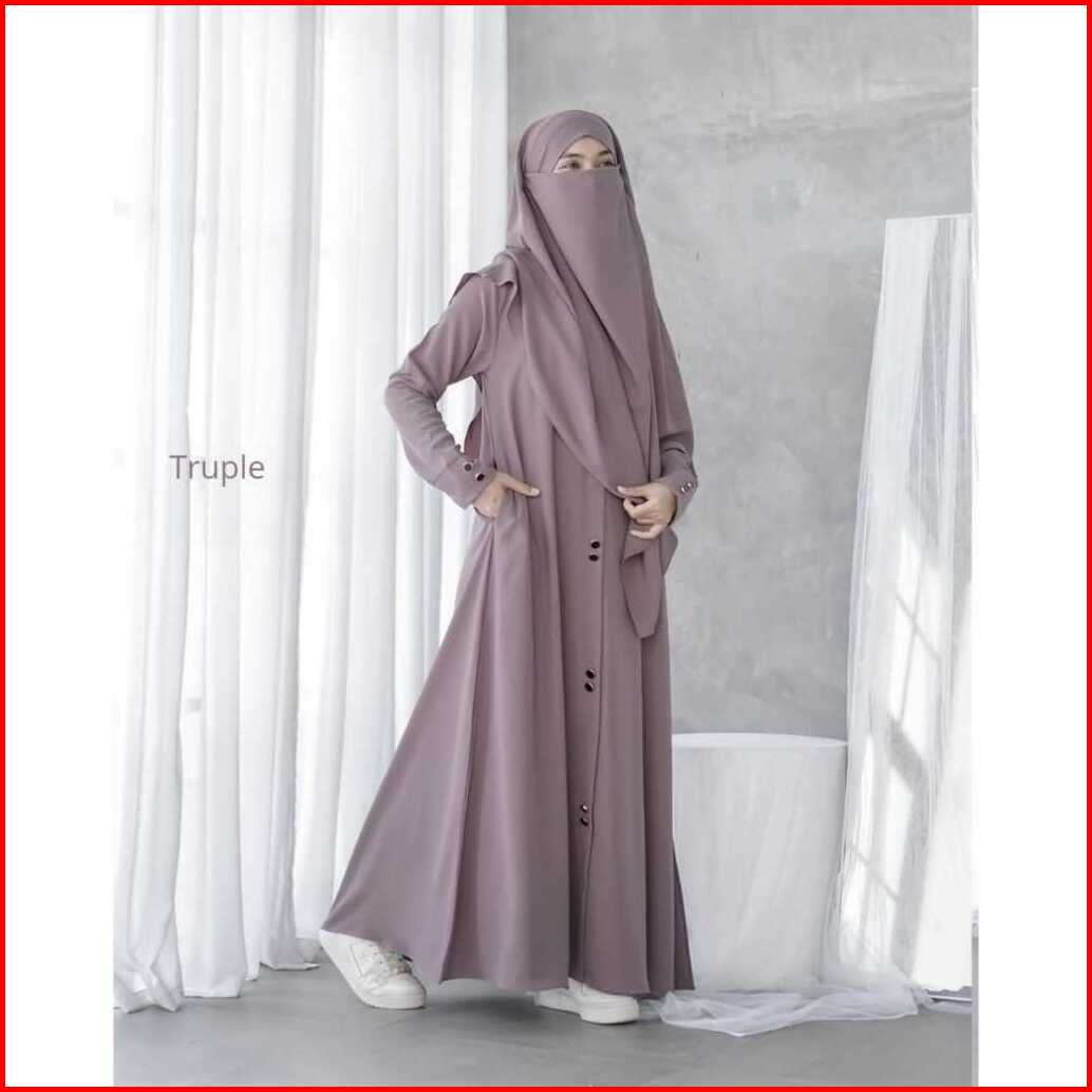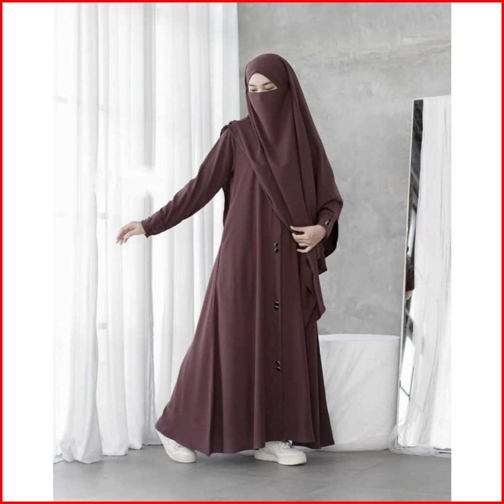 Gamis Abaya Ayra Terbaru 2025 Muslimah Set Khimar Simpel Dan Mewah Bahan Crinkle Airfow