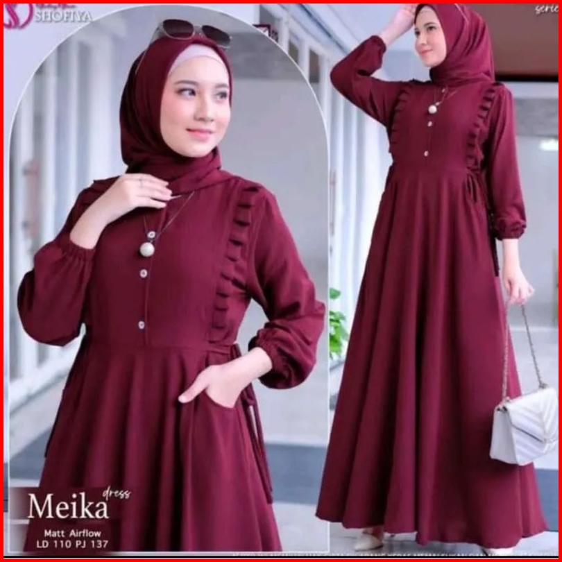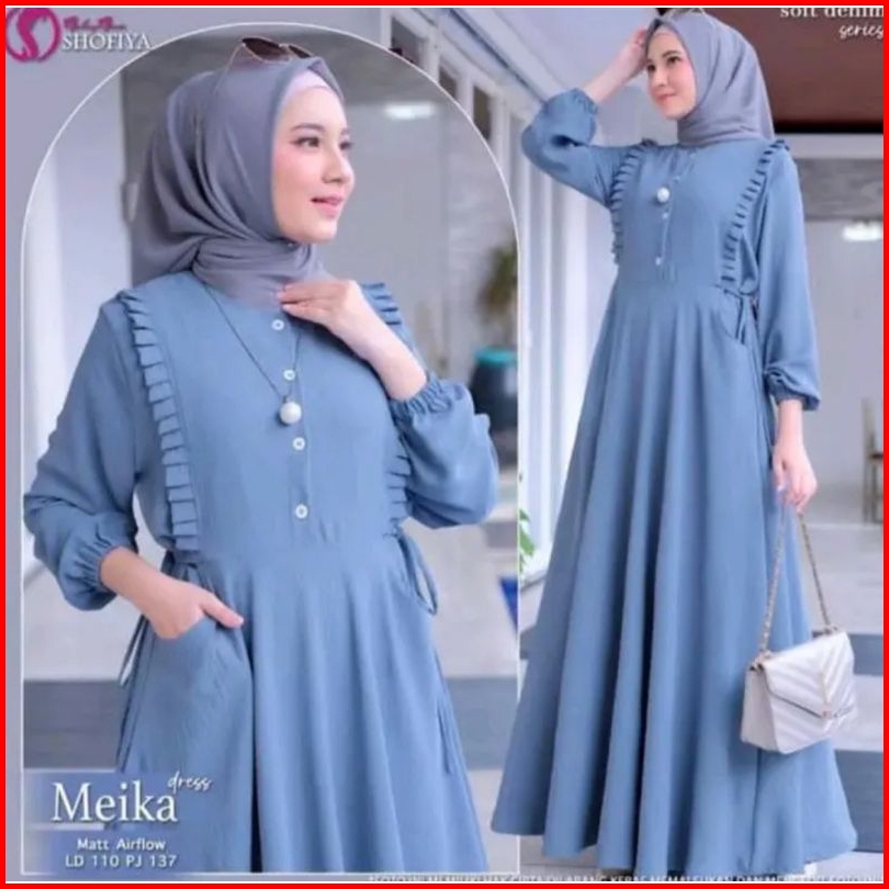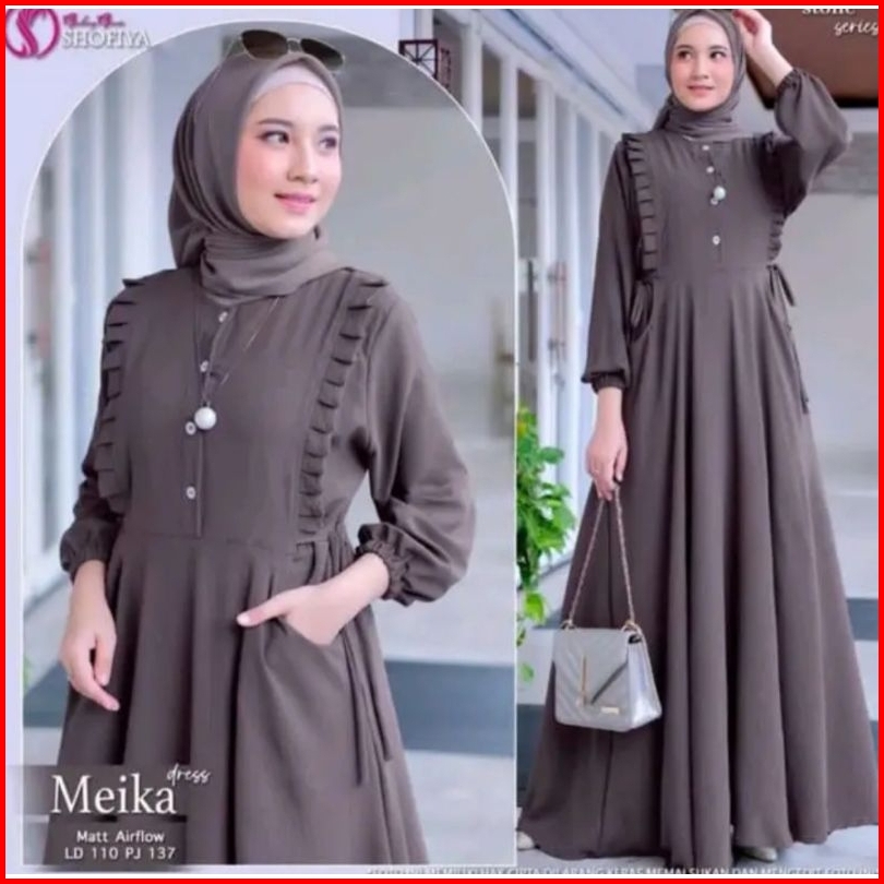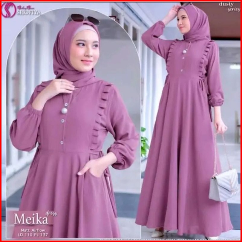 Gamis Meika Crincle Airflow Ld 110 Gamis Wanita Renda Bahan Cringkle Airflow Mewah Kombinasi Rempel Kekinian Gamis Wanit